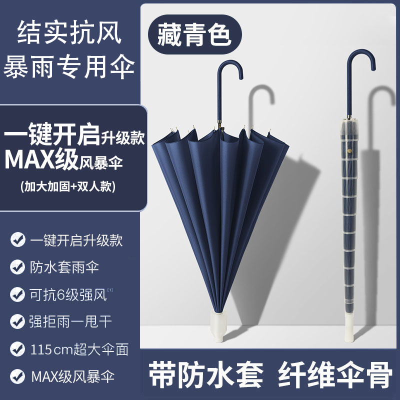 Увеличенная модель на 16 лет с водонепроницаемым чехлом [утолщенная водонепроницаемая ткань + каркас зонта из волокна с сильной ветроустойчивостью⭐Темно-синий]