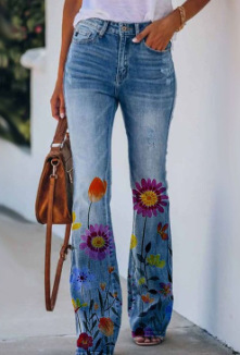 Главная страница > 2023 внешняя торговля Трансграничный AliExpress Ebay Европейская и Американская внешняя торговля большие размеры женские повседневные брюки тонкая имитация джинсы широкие ножки