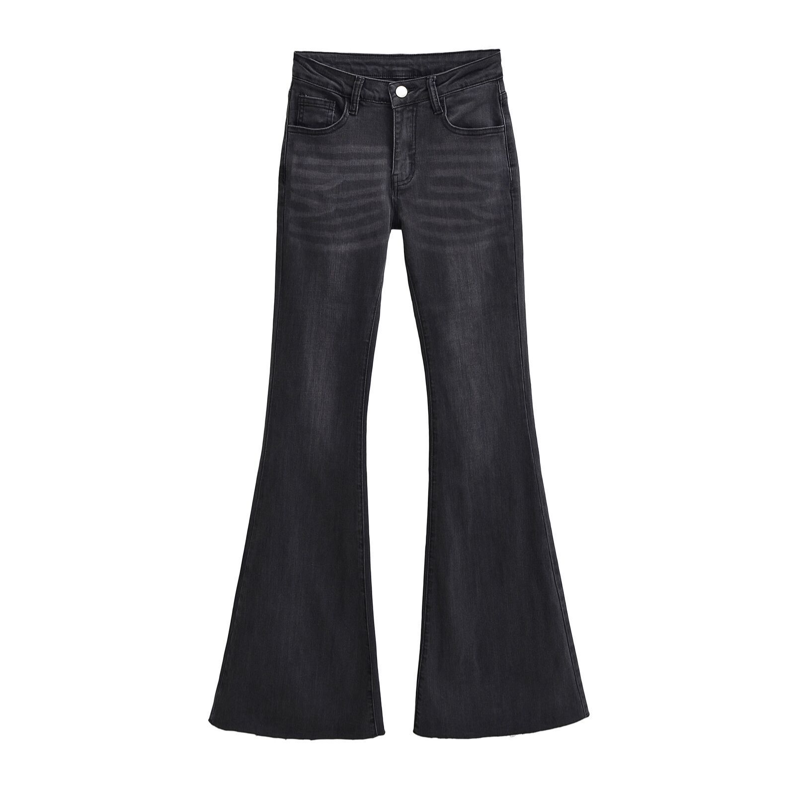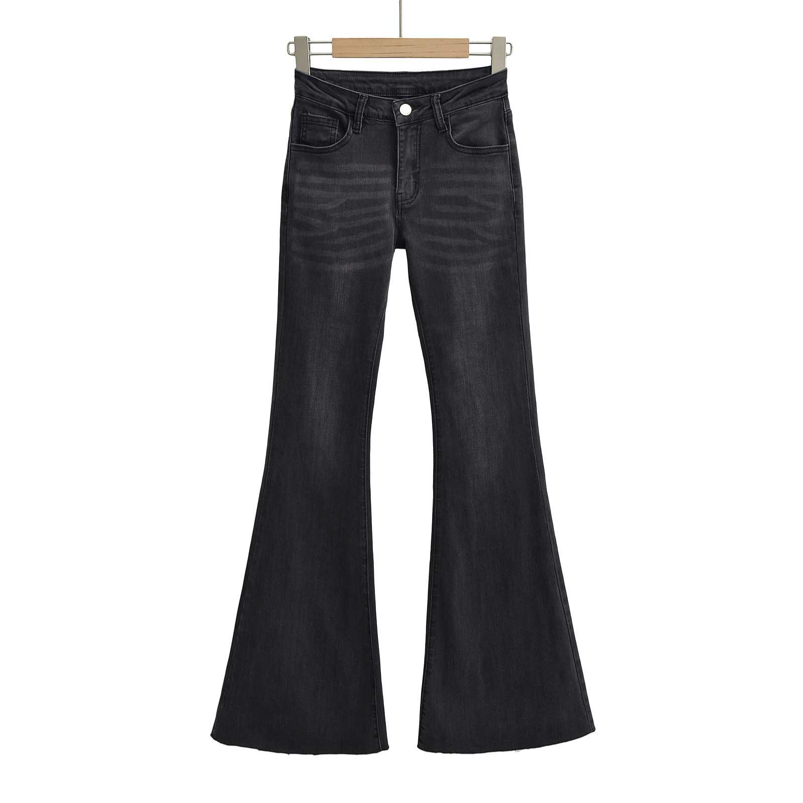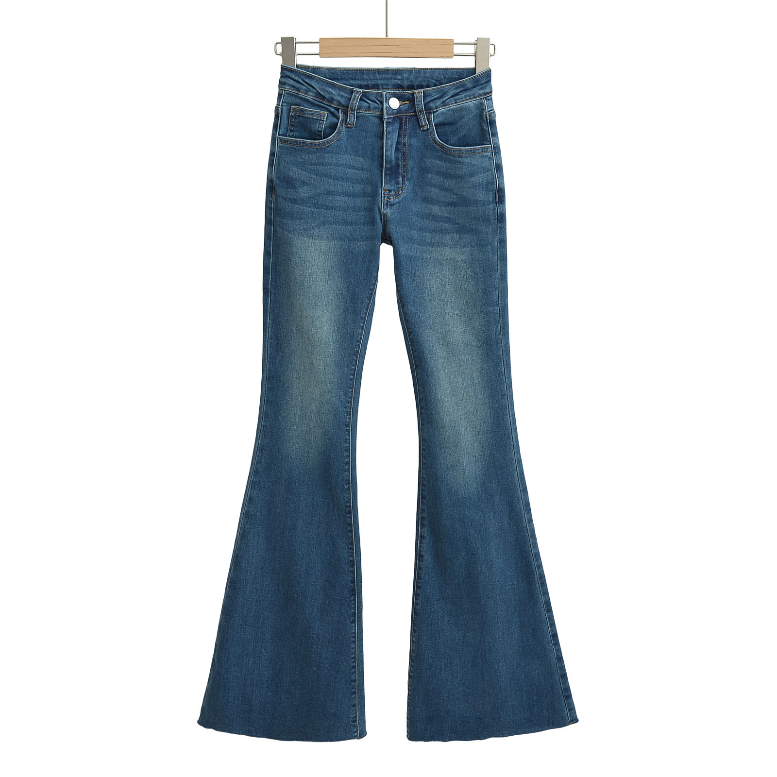 Горячая девушка большая труба шерстяные джинсы женский 2024 летний новый стиль ретро с низкой талией стирка микро-лама брюки для перетаскивания