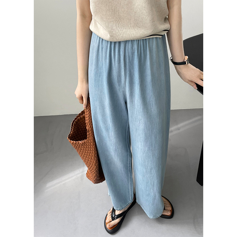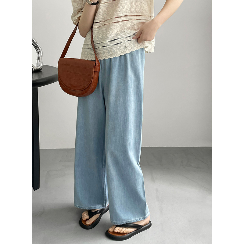Главная страница > Светло-голубые эластичные джинсы с высокой талией Tao Chuan, женские свободные повседневные прямые широкие брюки для похудения 2217