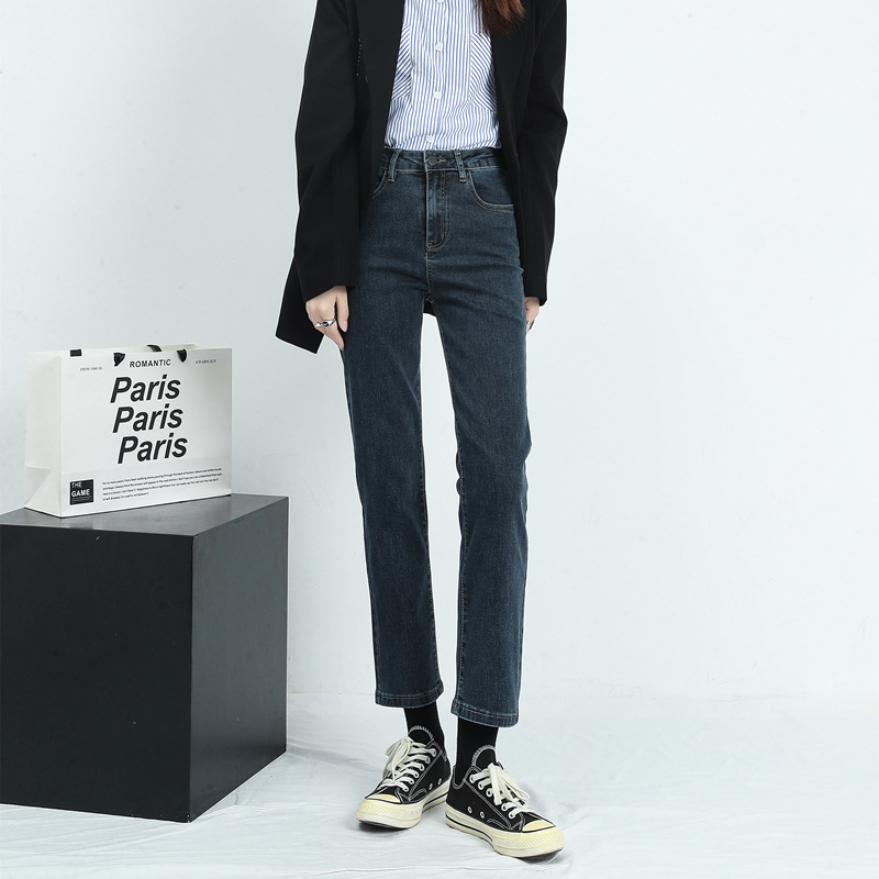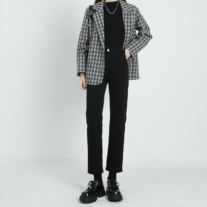 Главная страница > Черные прямые женские джинсы с высокой талией, новый стиль осени и зимы 2024 года, зимние утягивающие брюки-сигареты на флисовой подкладке.