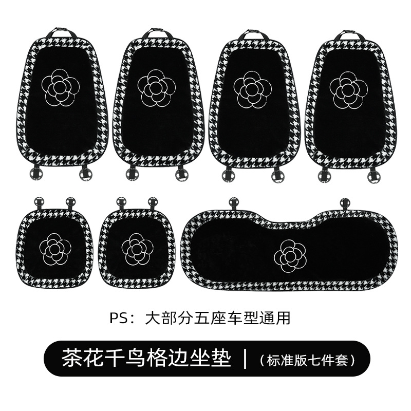 Набор из семи предметов подушки из кроличьего меха «гусиные лапки» с краем камелии
