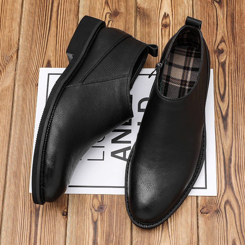 Главная страница > Ботинки Martin, Мужские осенне-зимние кожаные короткие ботинки без шнуровки, деловые Повседневные высокие кожаные ботинки, ботинки средней посадки в британском стиле