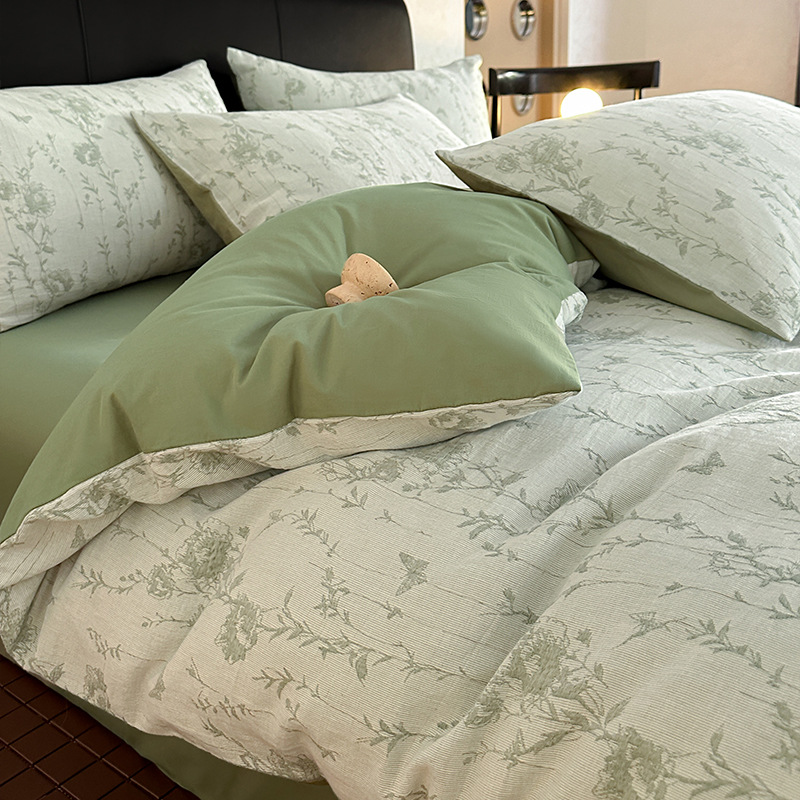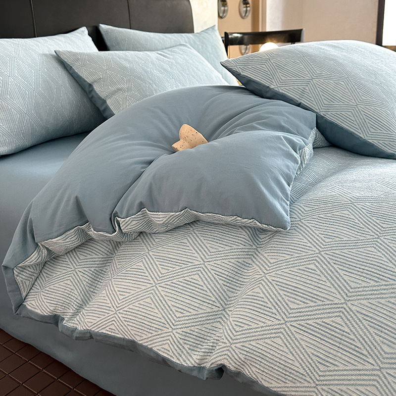 Легкая роскошь: трехслойный комплект постельного белья из хлопковой ткани, 4 предмета, чистый хлопок, новинка 2024 года, двухслойная марля, простой комплект постельного белья с пододеяльником.