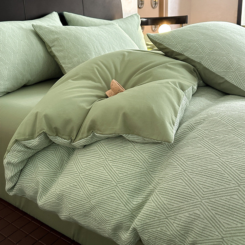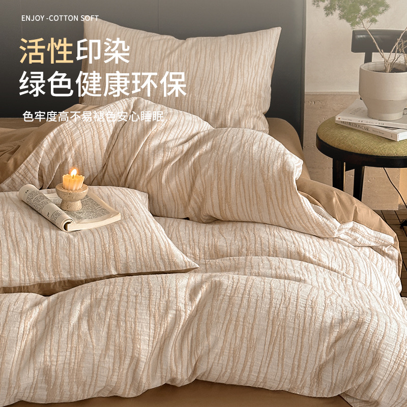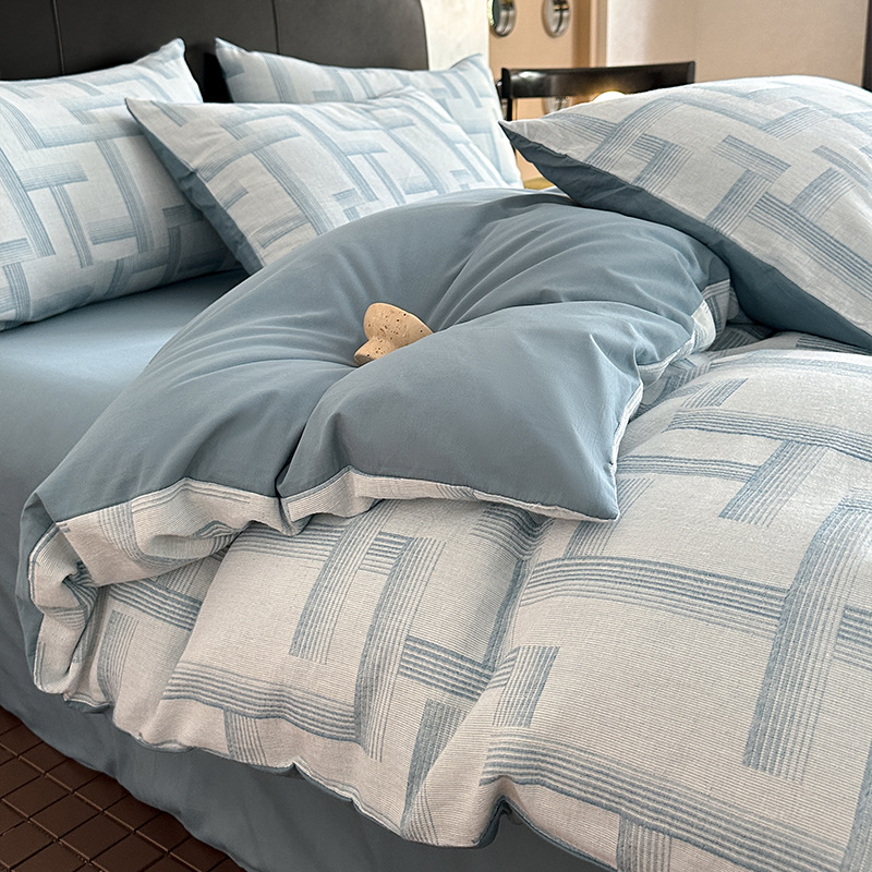 Главная страница > Легкая роскошь: трехслойный комплект постельного белья из хлопковой ткани, 4 предмета, чистый хлопок, новинка 2024 года, двухслойная марля, простой комплект постельного белья с пододеяльником.