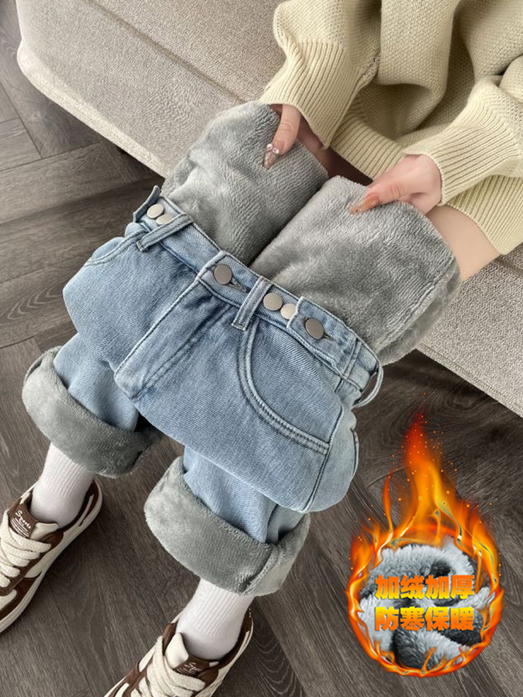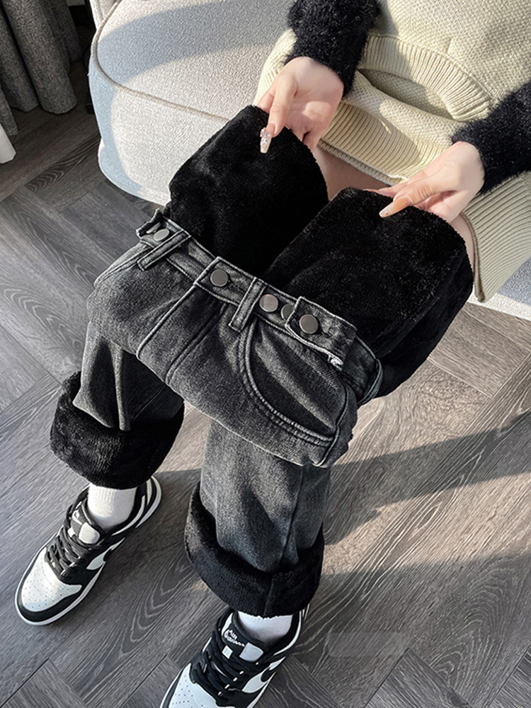 Главная страница > Утолщенные широкие джинсы женские 2023 зимние свободные приталенные теплые прямые брюки с высокой талией брюки на флисовой подкладке