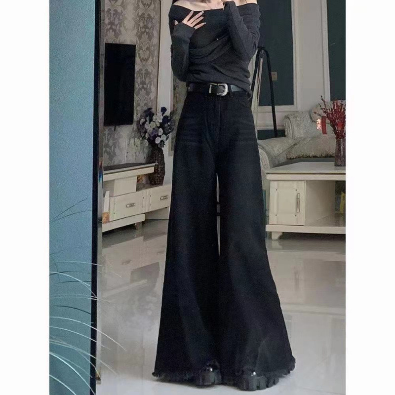 Большие черные широкие джинсы женские осенние новые высокие талии, свободная крышатая мясо, тонкая шерстяная труба