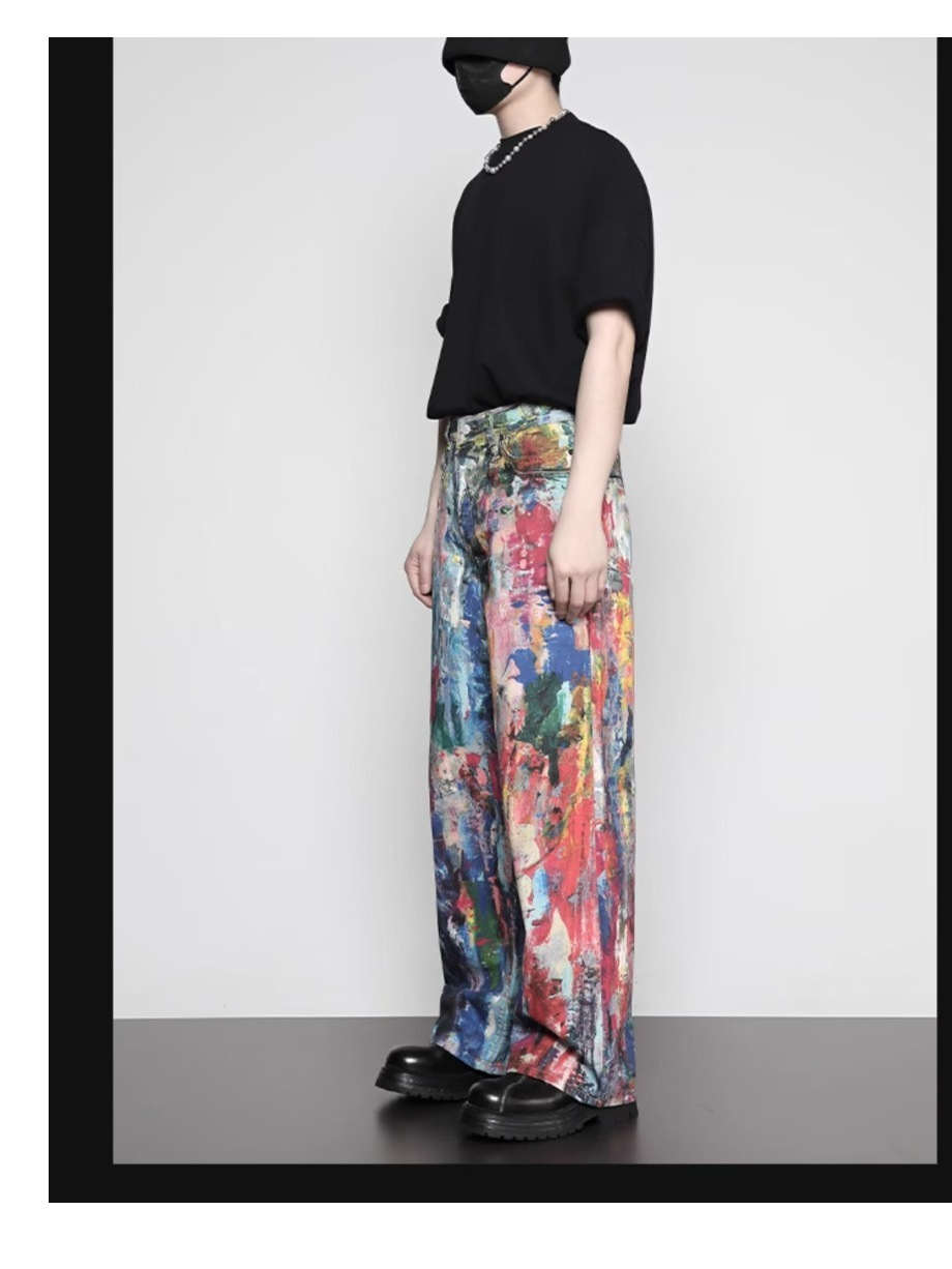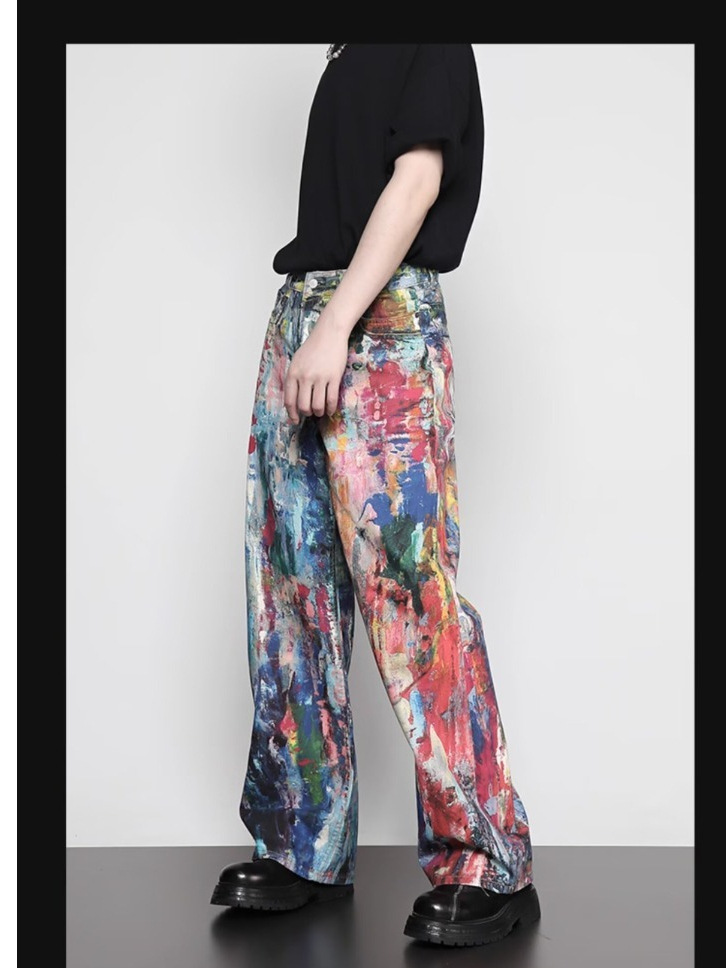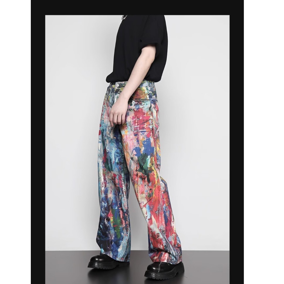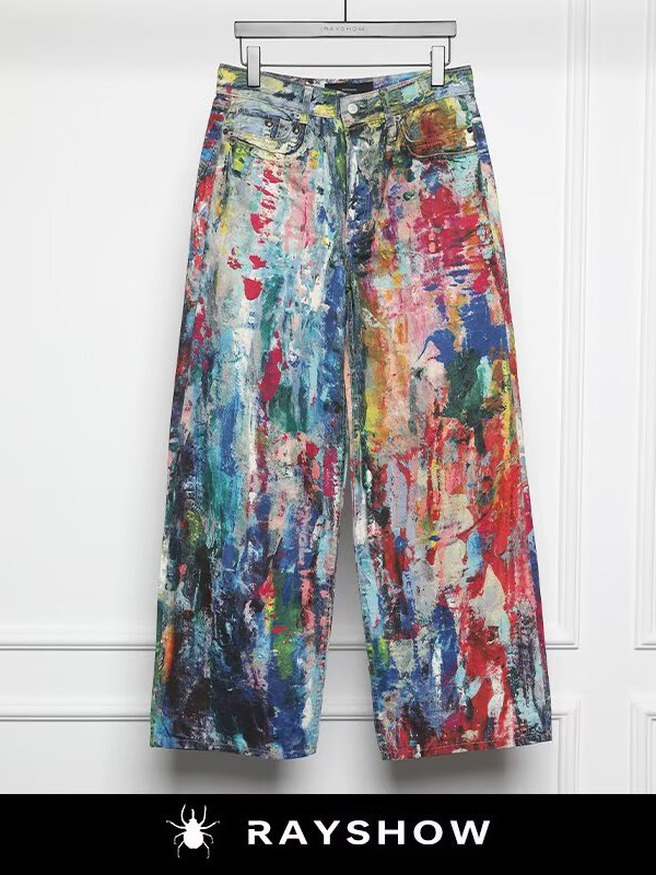 Главная страница > Американские ретро джинсы с красочным принтом и брызгами чернил для женщин, новые уличные дизайнерские длинные брюки с граффити