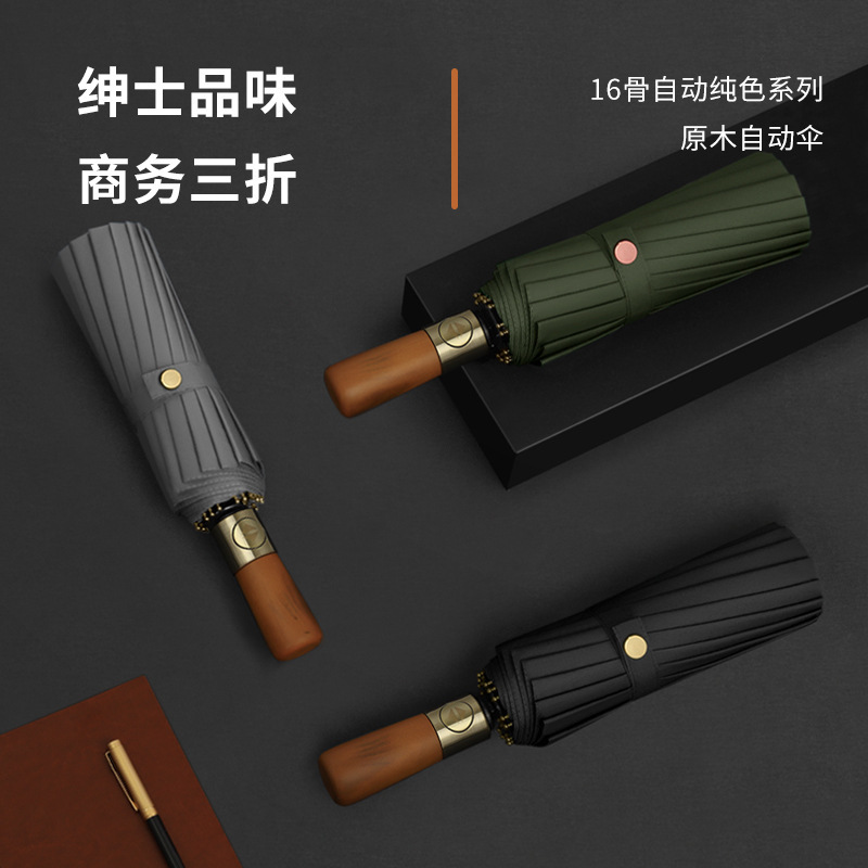 Главная страница > 16-костяной трехугольный автоматический оригинальный деревянный зонт