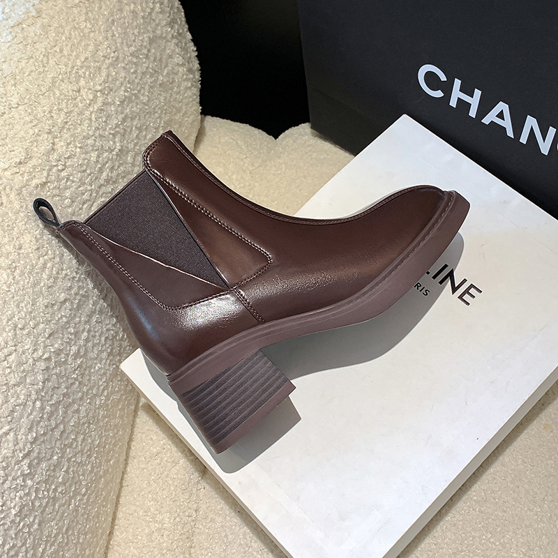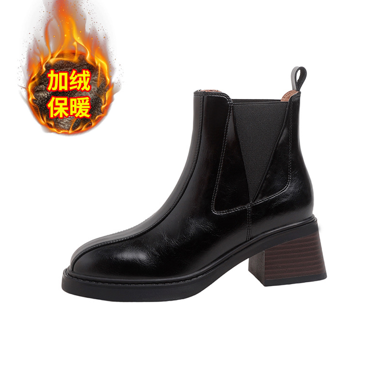 Главная страница > Черные ботинки на высоком каблуке Martin женский 2024 новый ретро английский стиль толстые каблуки тонкие ботинки Челси короткие ботинки