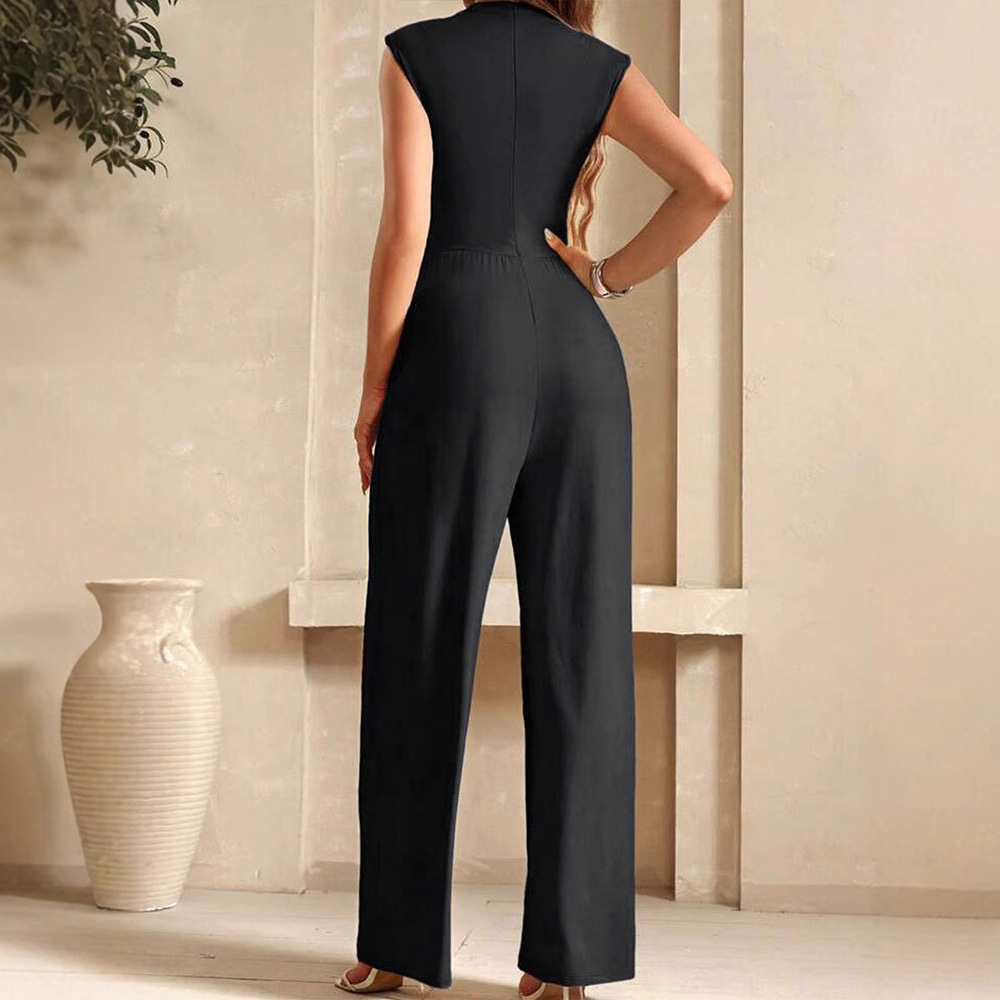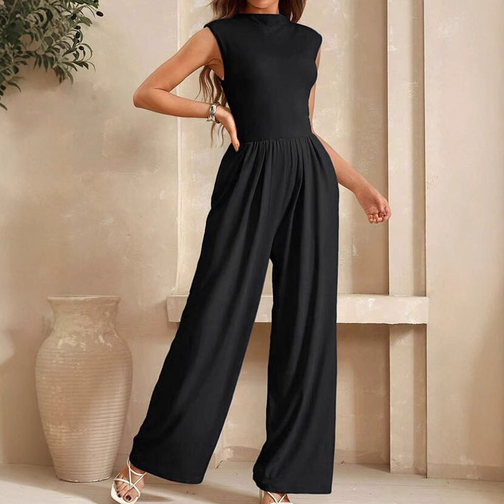 Главная страница > Летний женский комбинезон AD263 в европейском и американском стиле, однотонный, повседневный, с круглым вырезом, без рукавов, высокой талией и широкими штанинами.