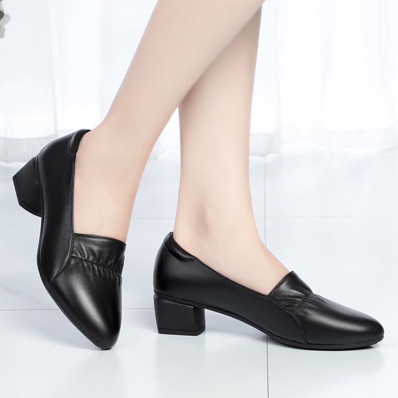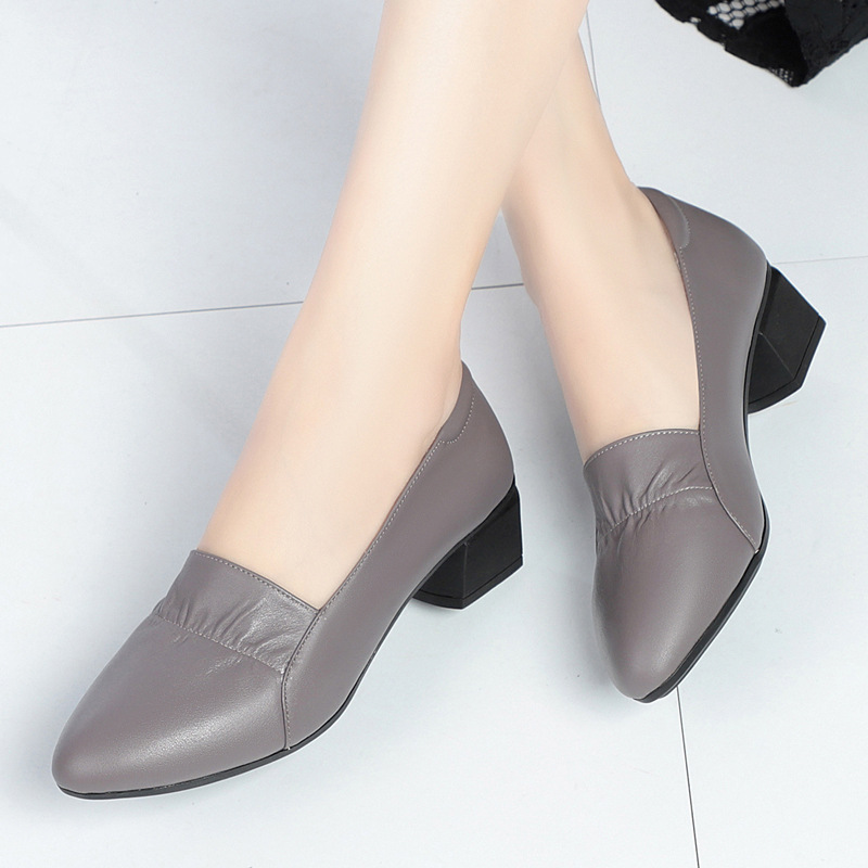 Главная страница > Женские туфли из мягкой кожи на мягкой подошве, осень 2024, новые повседневные универсальные туфли на среднем каблуке с острым носком, женские туфли с неглубоким носком, маленькие кожаные туфли для женщин