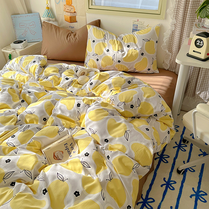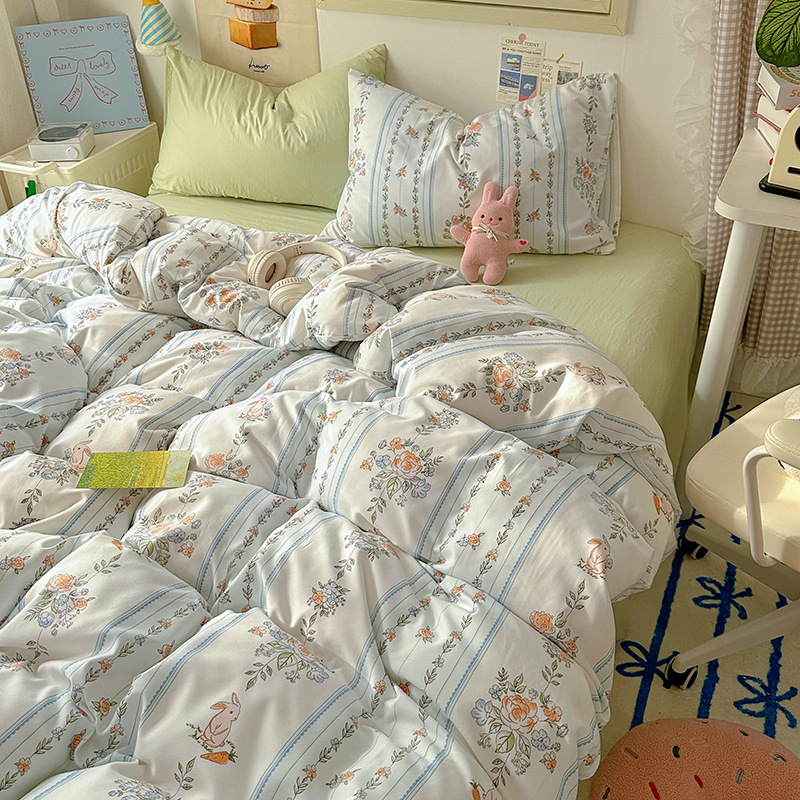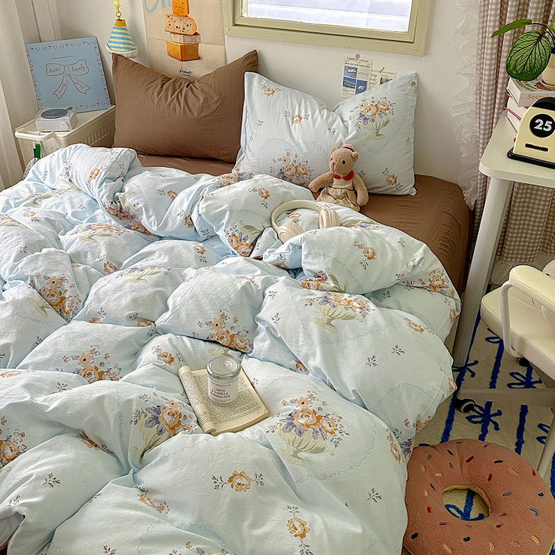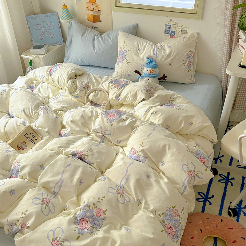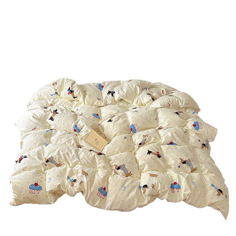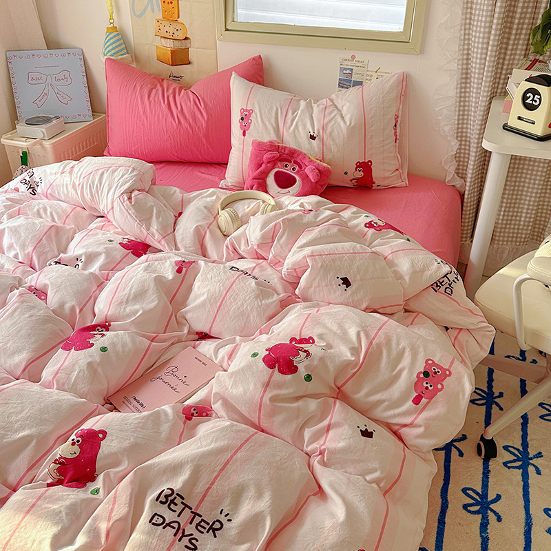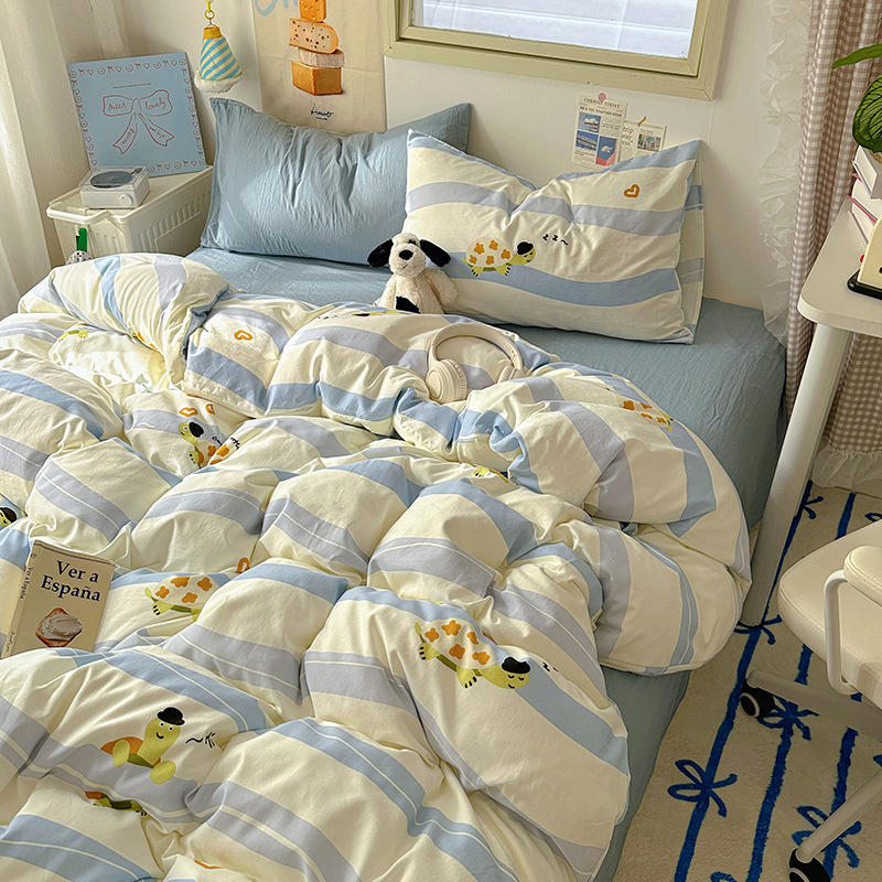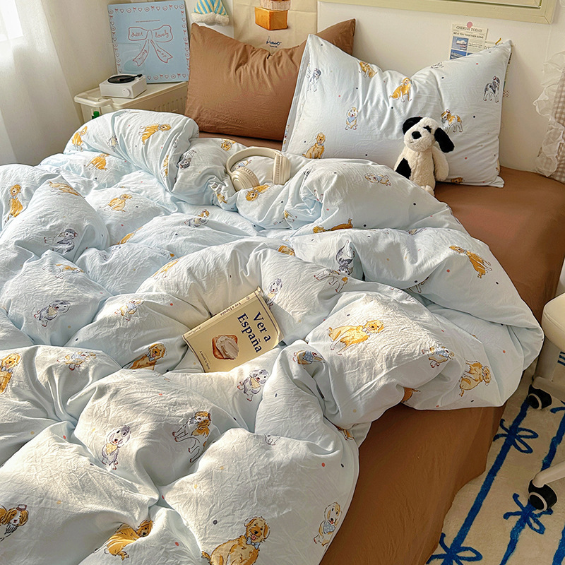 Главная страница > Комплект постельного белья из четырех предметов из стираного хлопка с новым мультяшным принтом: пододеяльник, простыня (трехкомпонентный комплект), двухслойная марлевая постельная утварь для зимы.