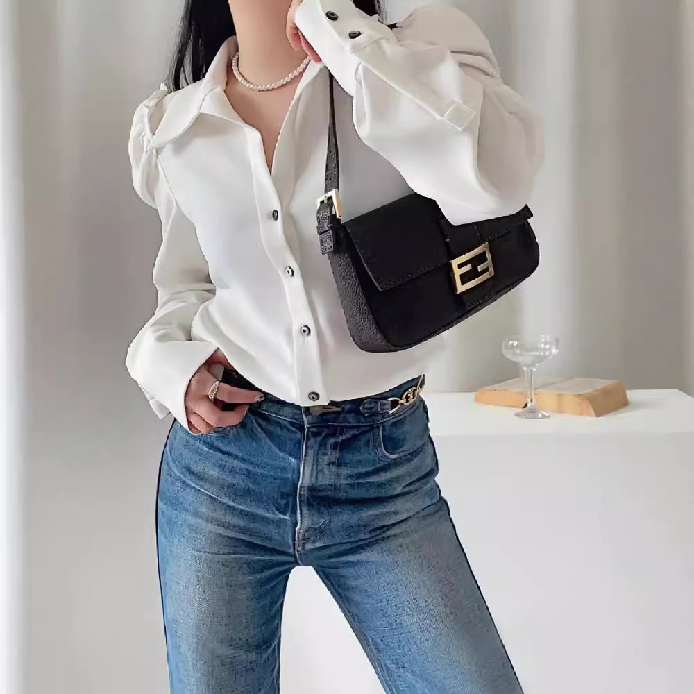 Джинсы женские из плотного денима с эффектом потертости, винтажные, с металлическими элементами, высокая талия, прямой крой, стройнящие.