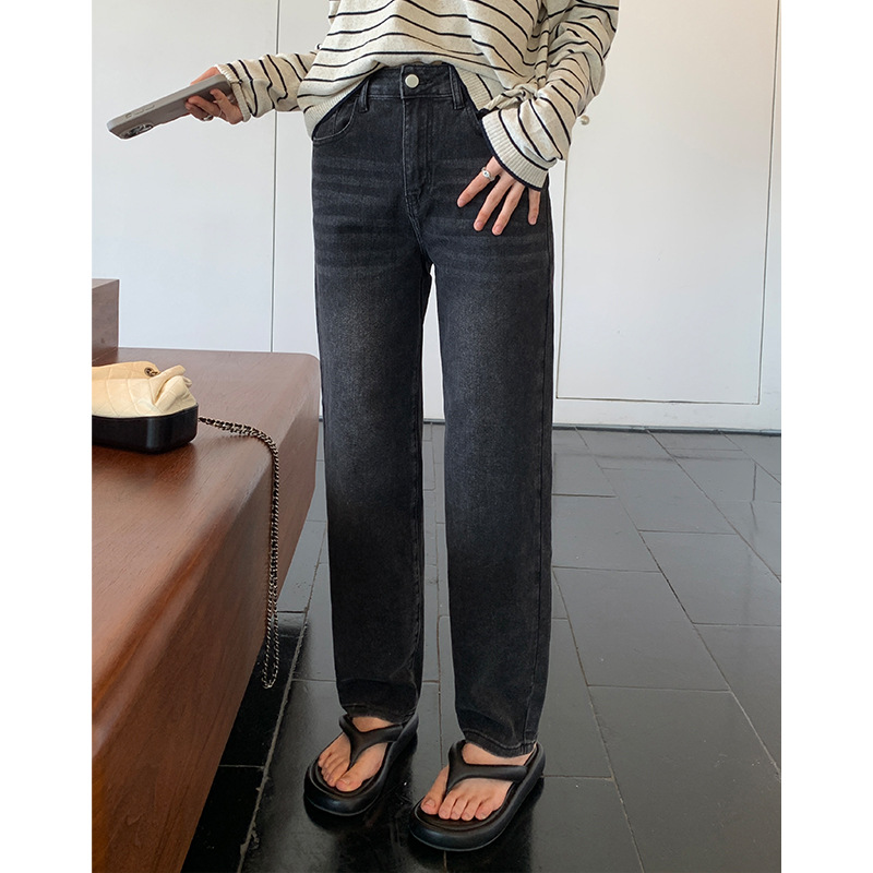 Главная страница > 4 цвета джинсы с высокой талией женский 2025 новый стиль свободные прямые брюки слегка пухлые толстые толстые джинсы женские