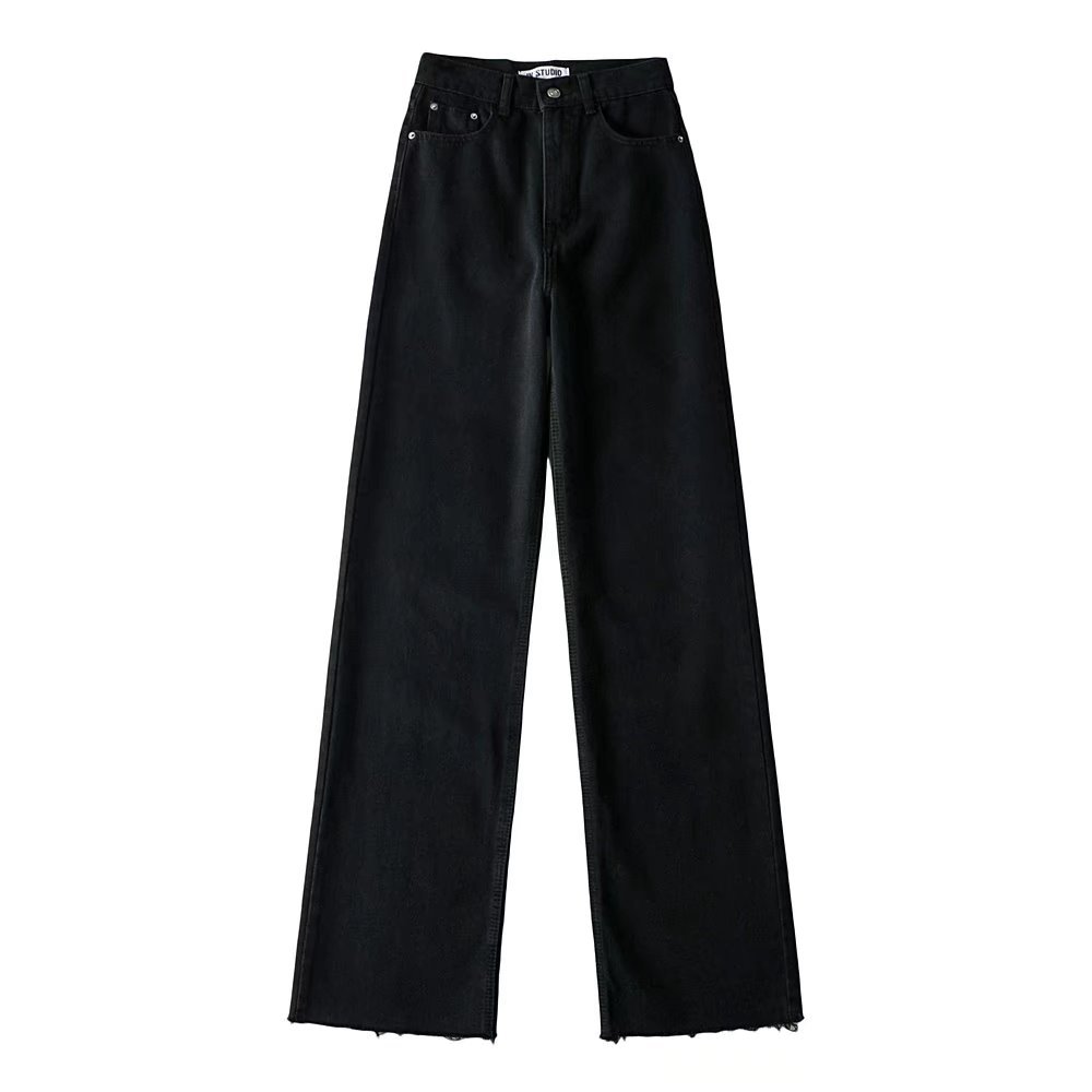 Главная страница > Женские Широкие джинсовые брюки со рваными штанинами, прямые свободные облегающие джинсы с завышенной талией, с завышенной талией, осень 2020