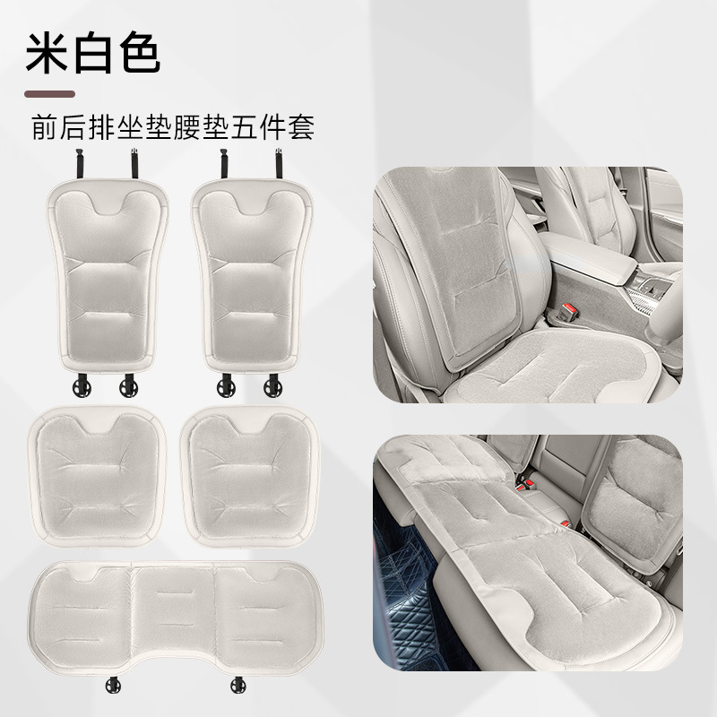 Фланелевая подушка сиденья + спинка [Идеально белый] Комплект из 5 предметов для всего автомобиля