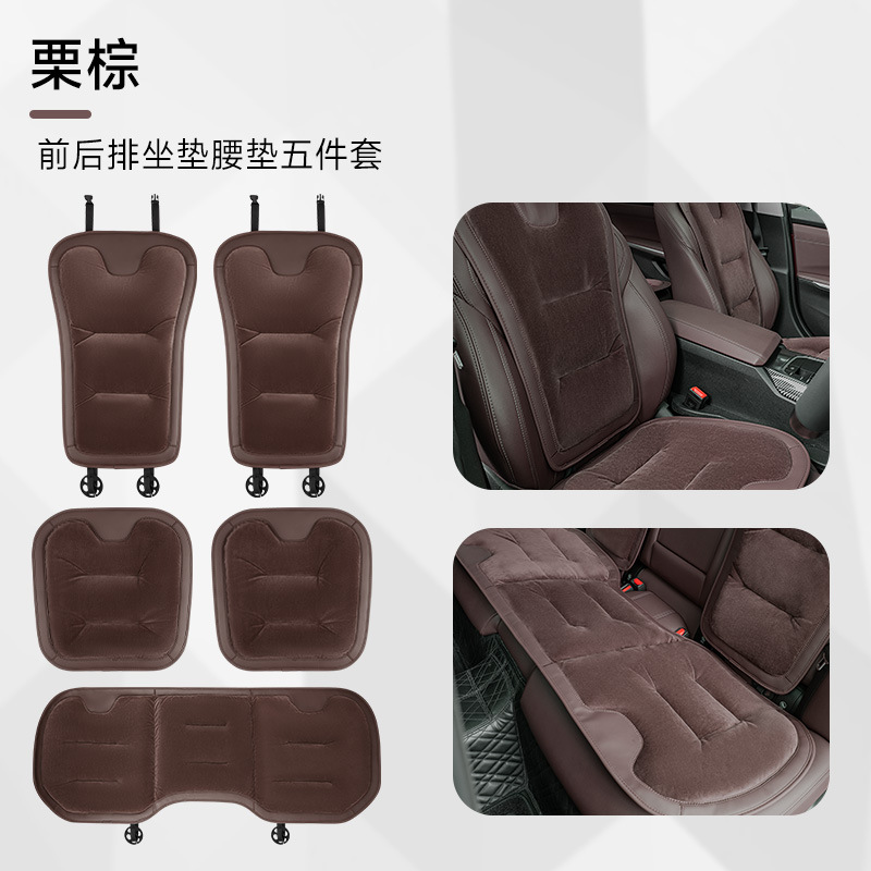 Фланелевая подушка + спинка [каштаново-коричневый] Комплект из 5 предметов для всего автомобиля