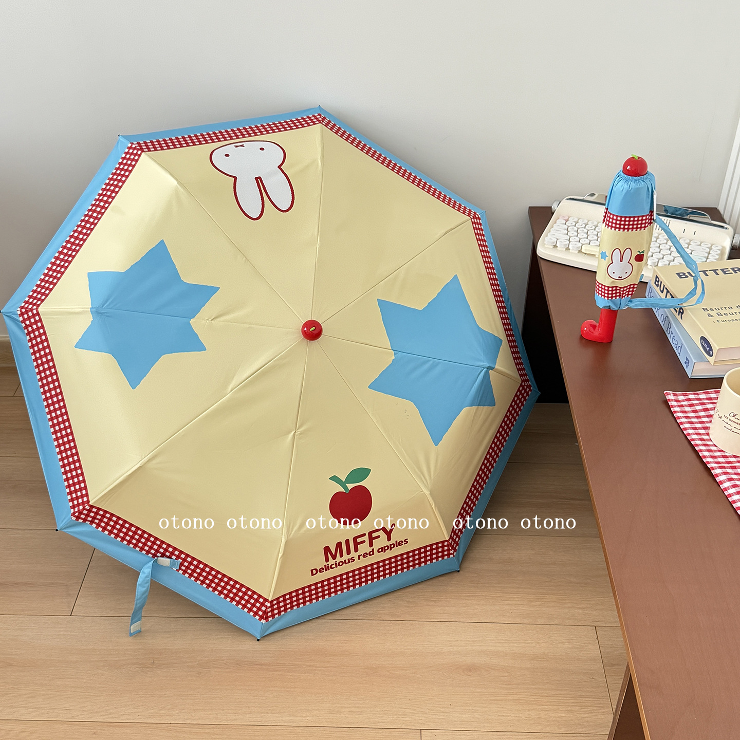 (Красные сапожки) Ручной зонтик Miffy Rabbit с желтой нижней частью Apple Star (настоящее разрешение~)