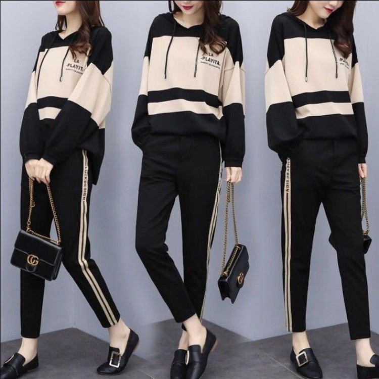 Главная страница > Элегантный повседневный костюм для пышных девушек, Новинка осени и зимы, женская одежда больших размеров, свободный стройнящий комплект из двух предметов в западном стиле