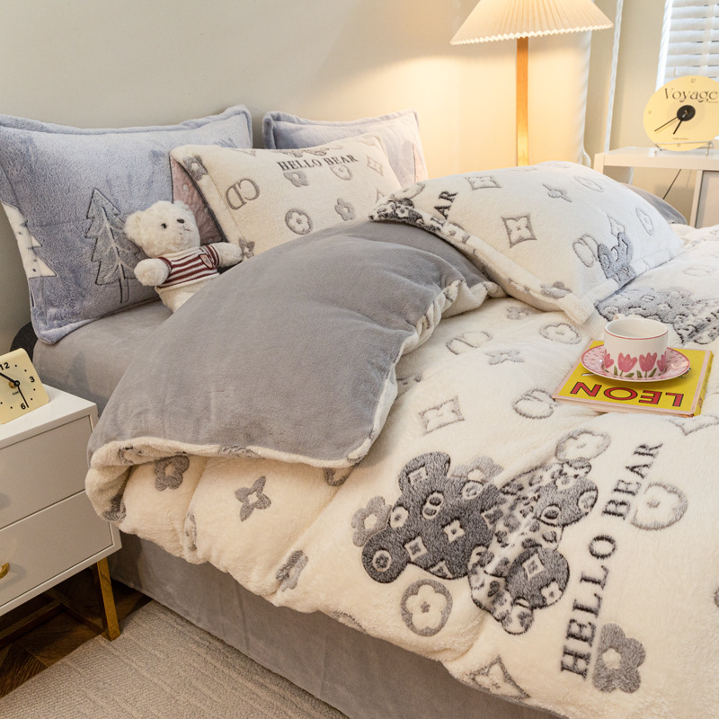 Главная страница > Теплый комплект постельного белья из четырех предметов на флисовой подкладке: коралловый флис, фланель, молочный цвет, пододеяльник, простыня, комплект из трех предметов для зимы, для общежития