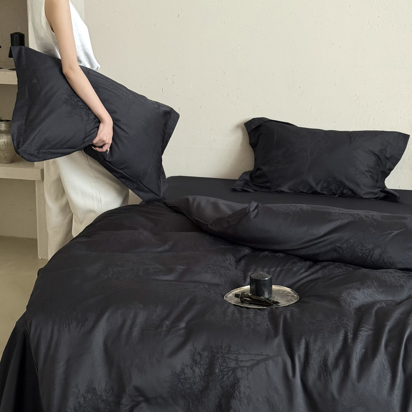 Главная страница > Прецизионный жаккард! Комплект из четырех предметов из длинноволокнистого хлопка, состоящий из 100 нитей, с эффектом легкой роскоши и высококачественным дизайном, подходит для сна без одежды, включая комплект постельного белья и пододеяльника.
