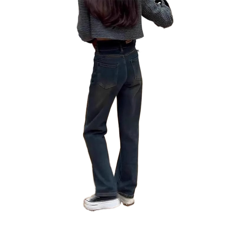 Главная страница > Высокая талия, бархатные толстые прямые джинсы женские осень-зима 2025 новые ретро свободные тонкие, вытянутые широкие брюки