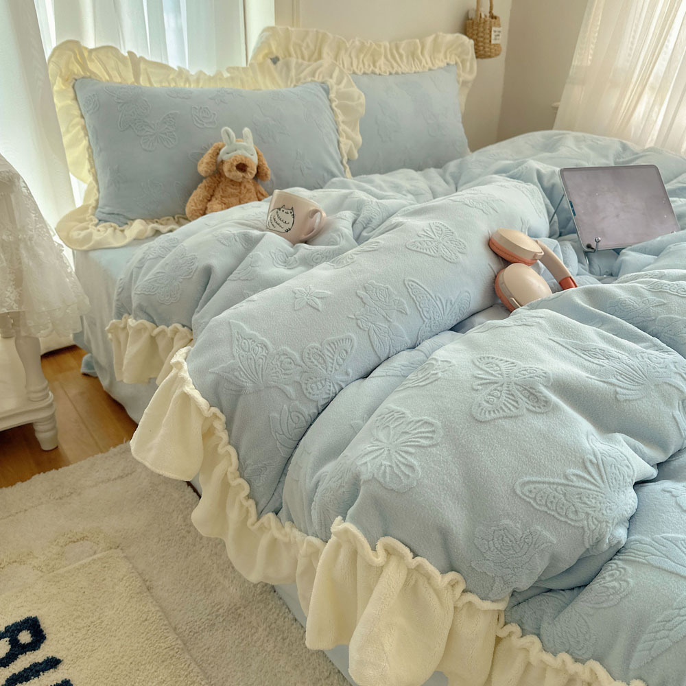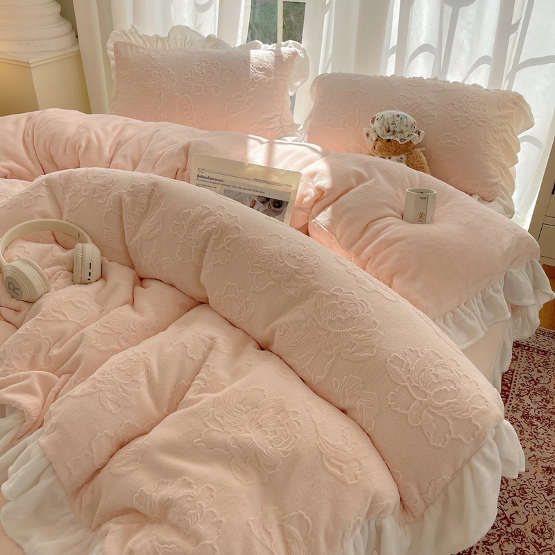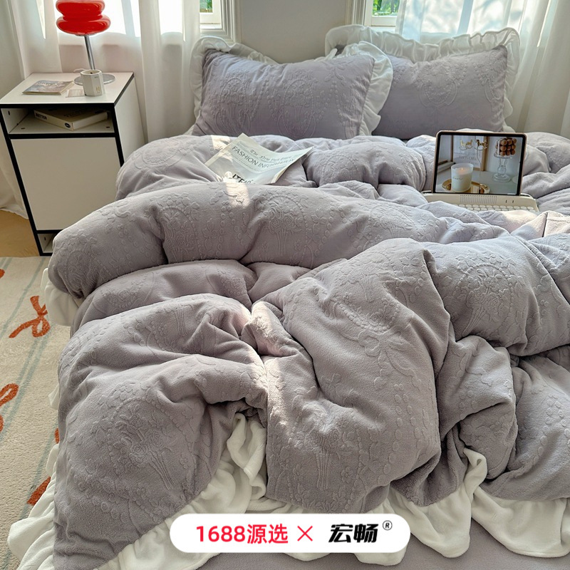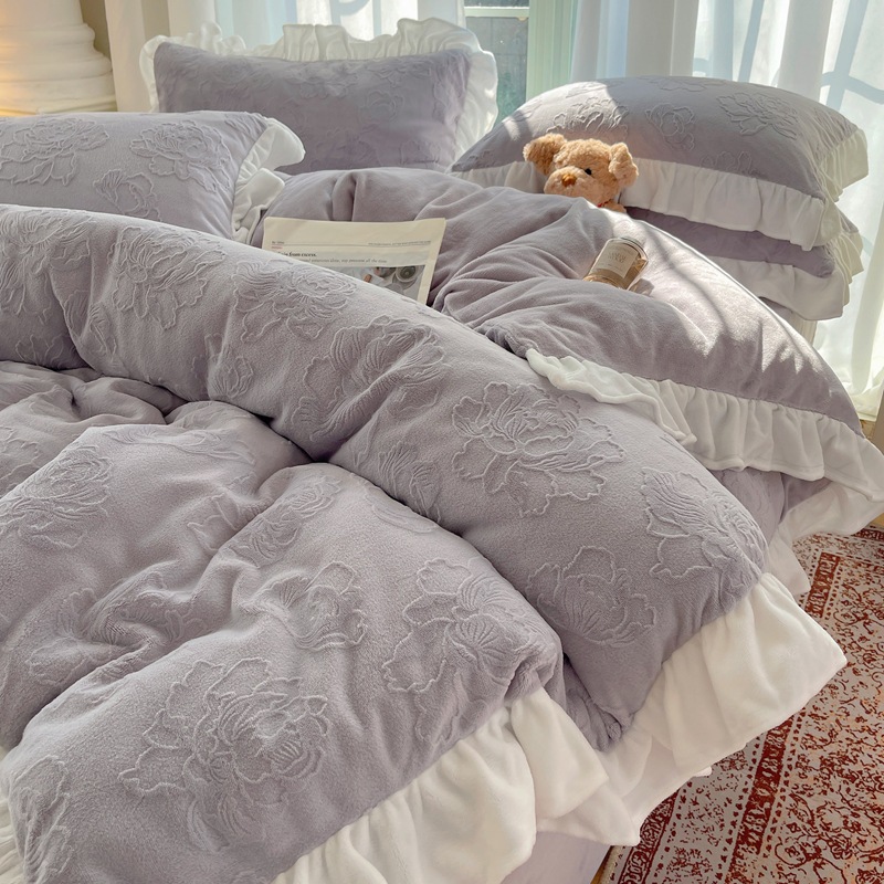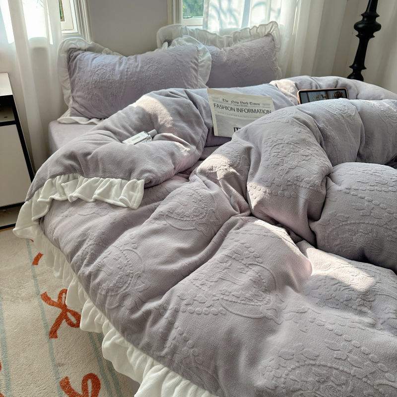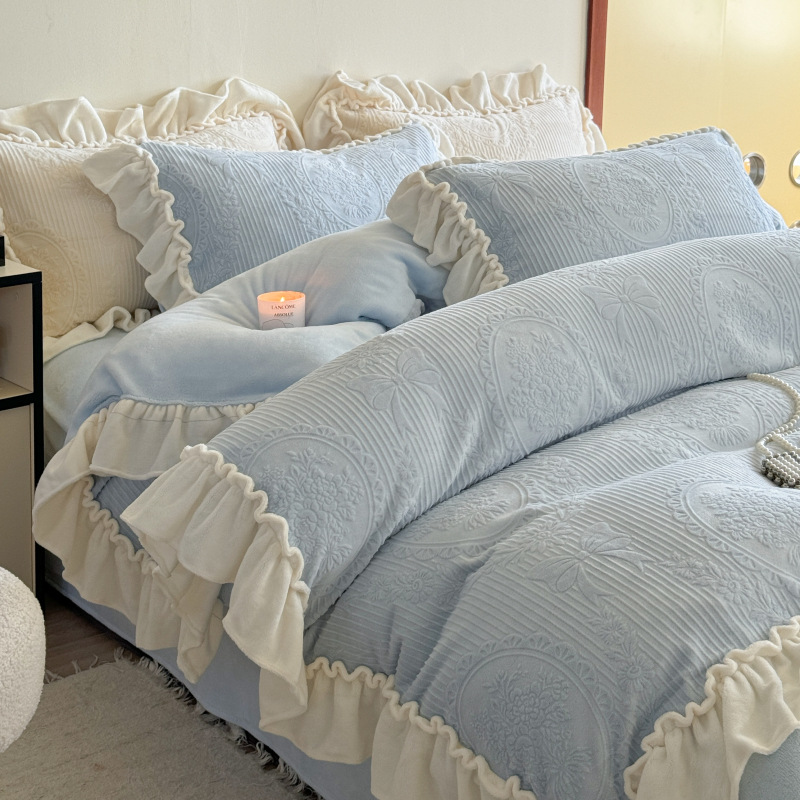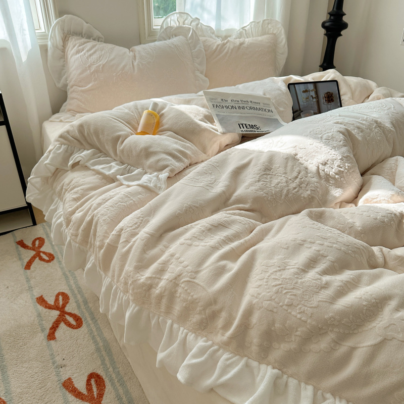 Главная страница > Французский кружевой набор типа A молочный бархат из четырех частей утолщен осенью и зимой
