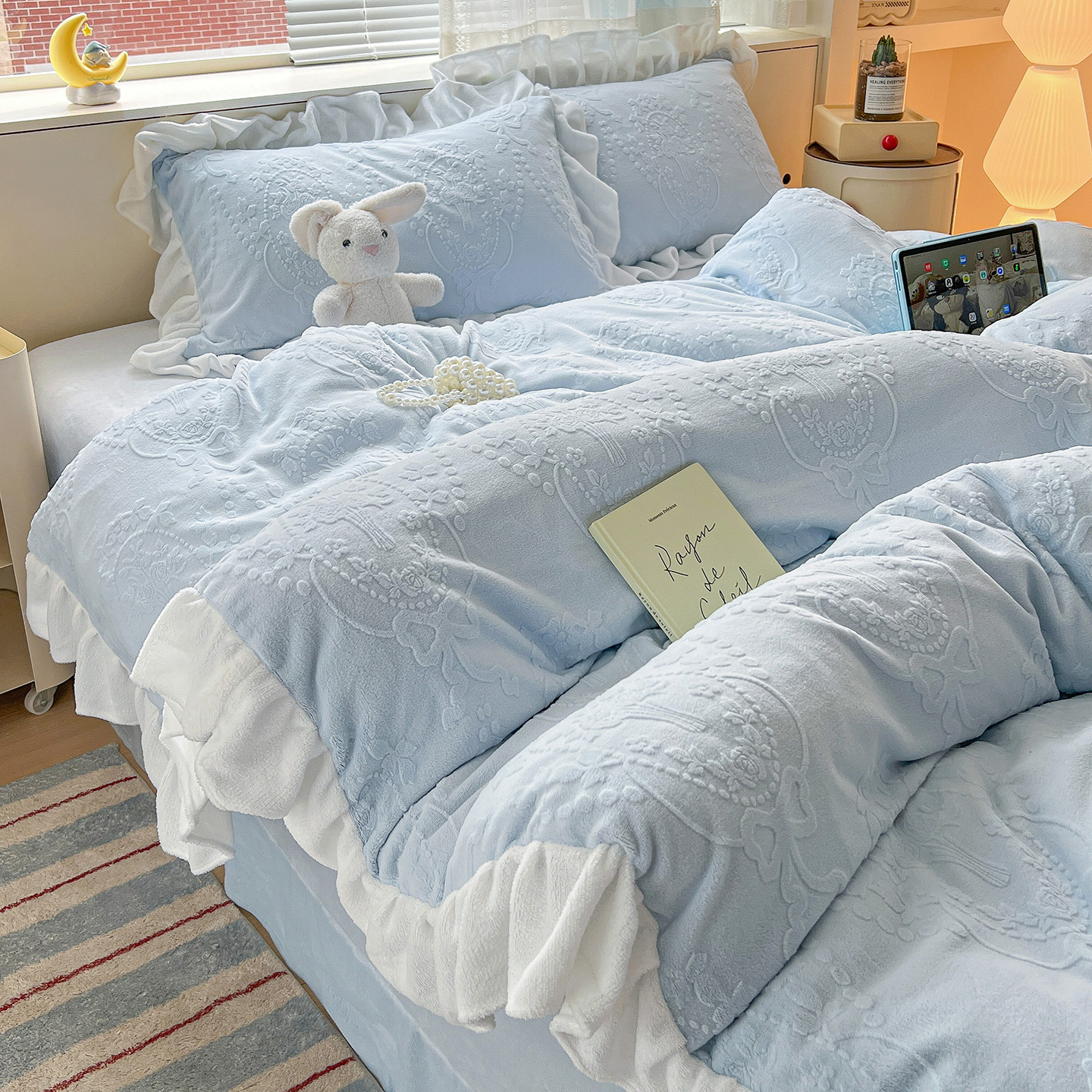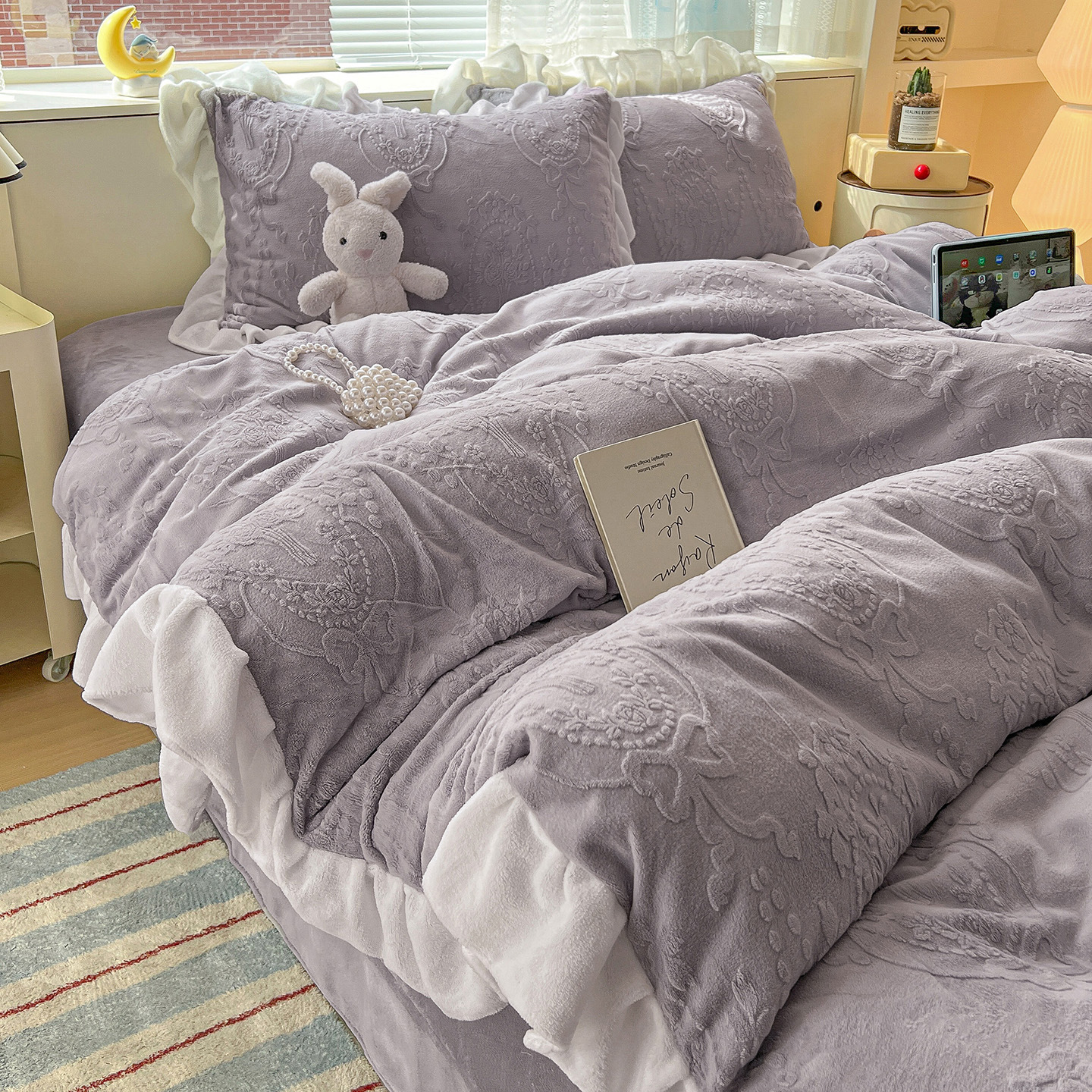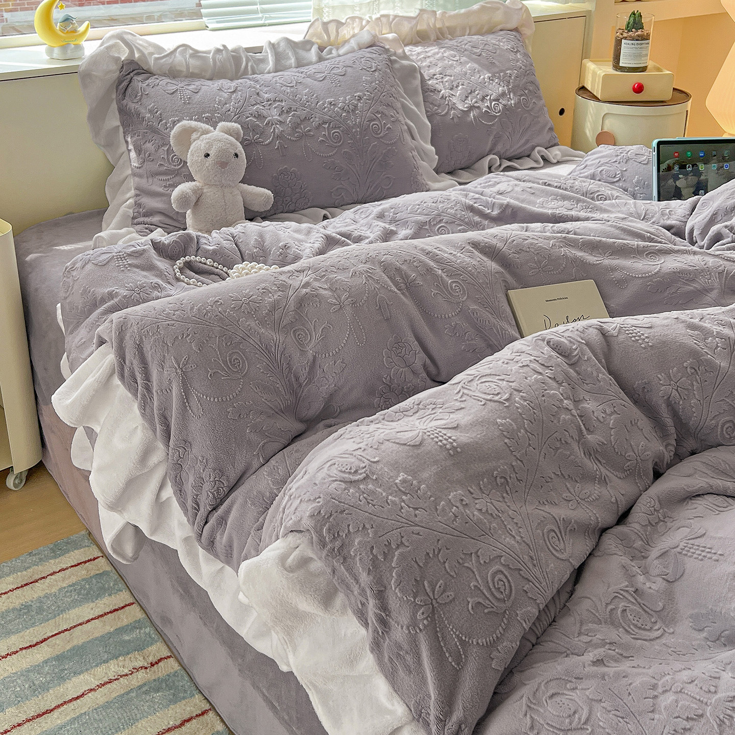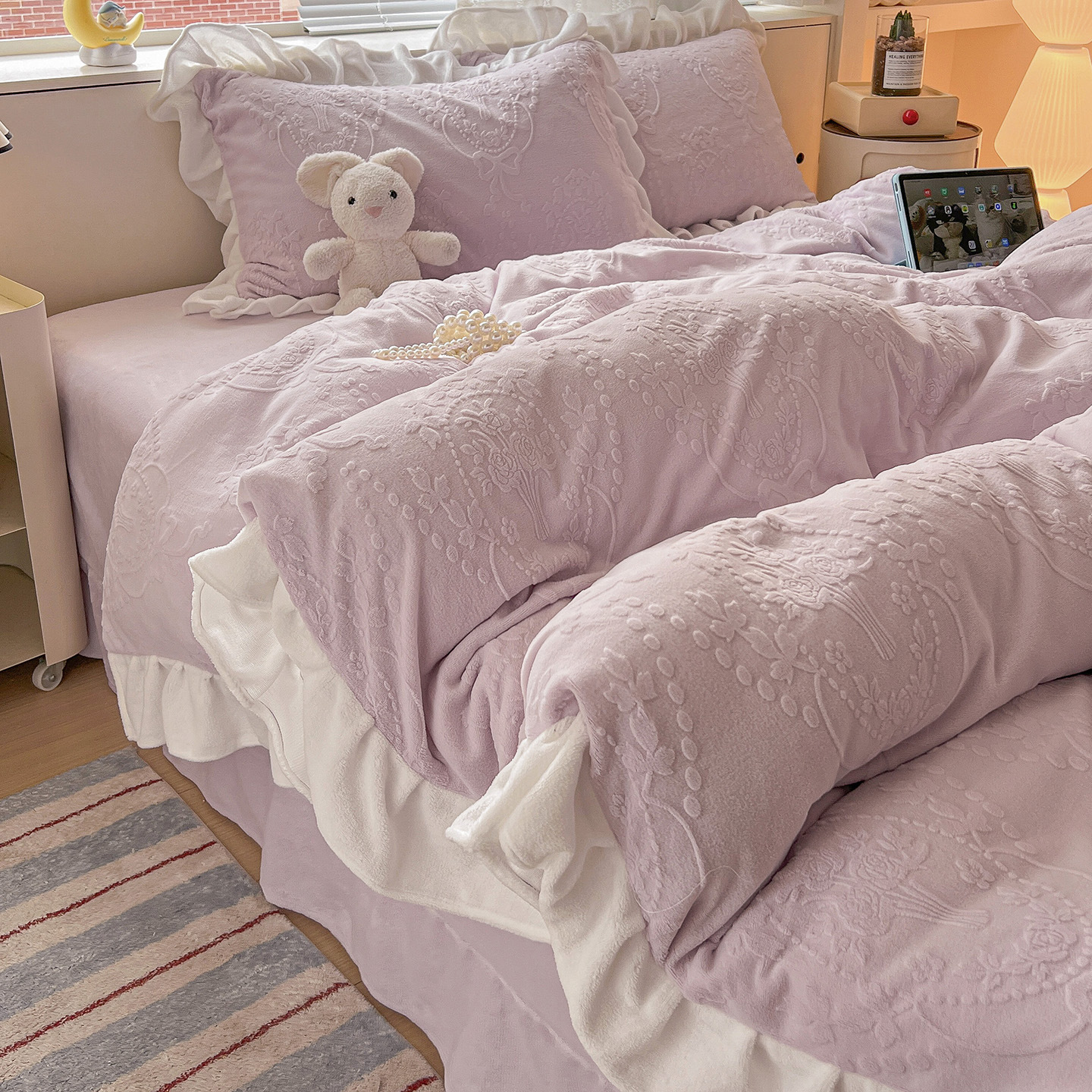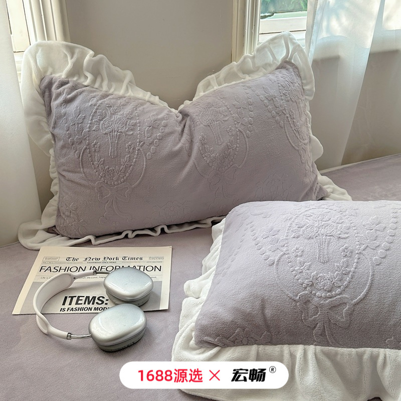 Главная страница > Французский кружевой набор типа A молочный бархат из четырех частей утолщен осенью и зимой