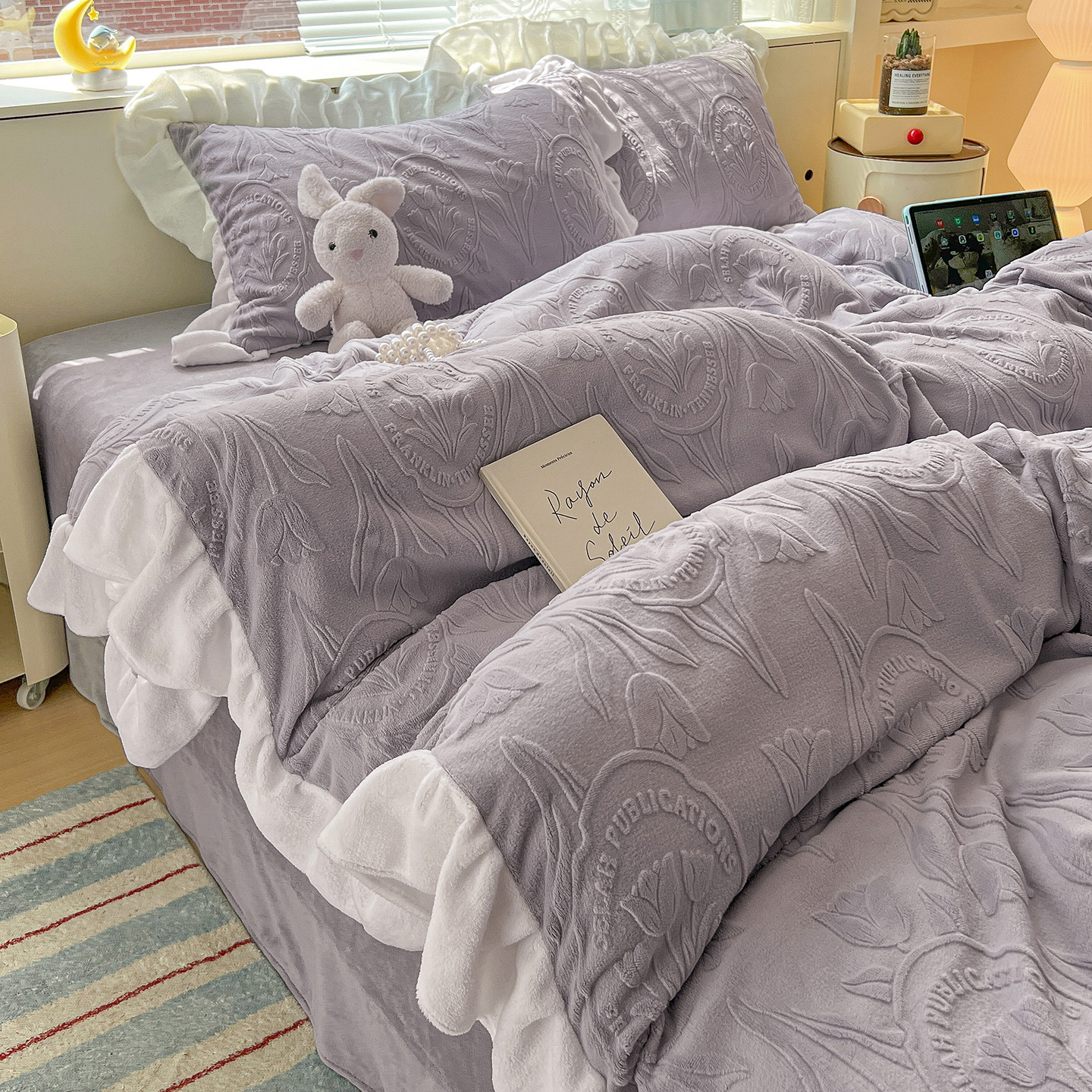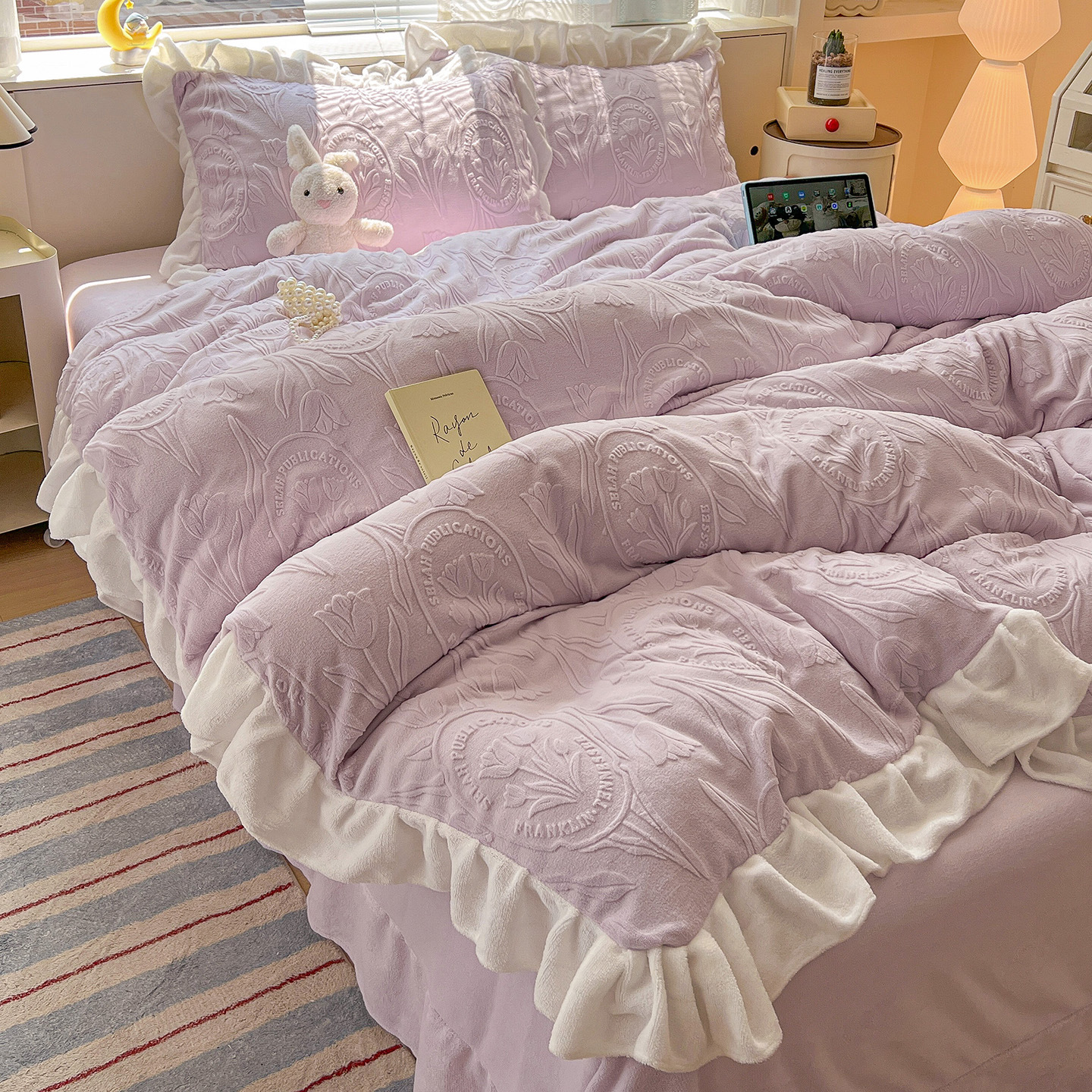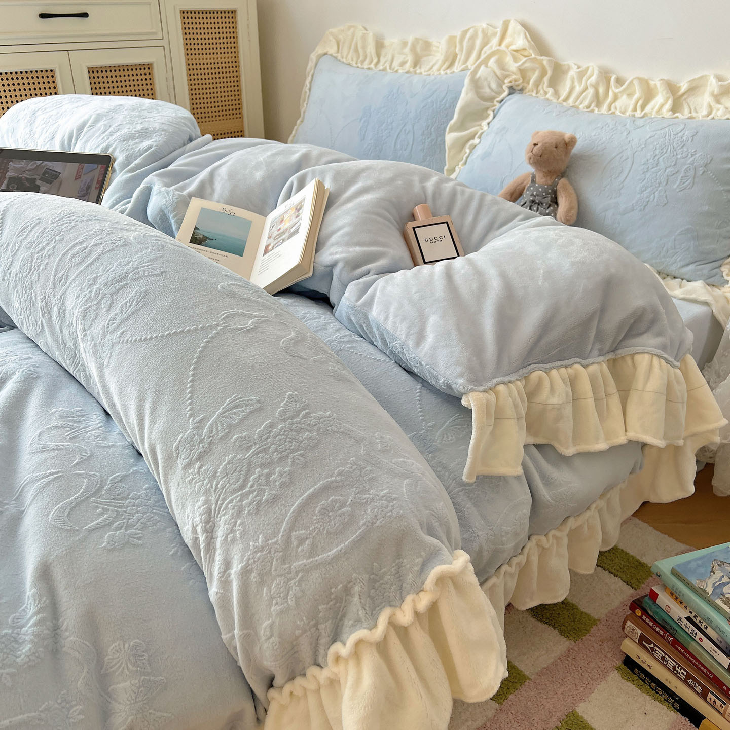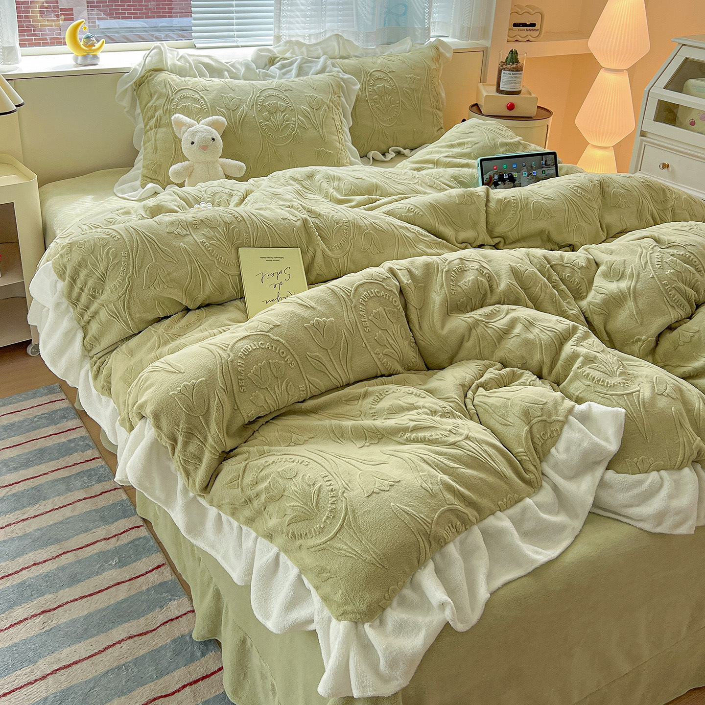 Главная страница > Французский кружевой набор типа A молочный бархат из четырех частей утолщен осенью и зимой