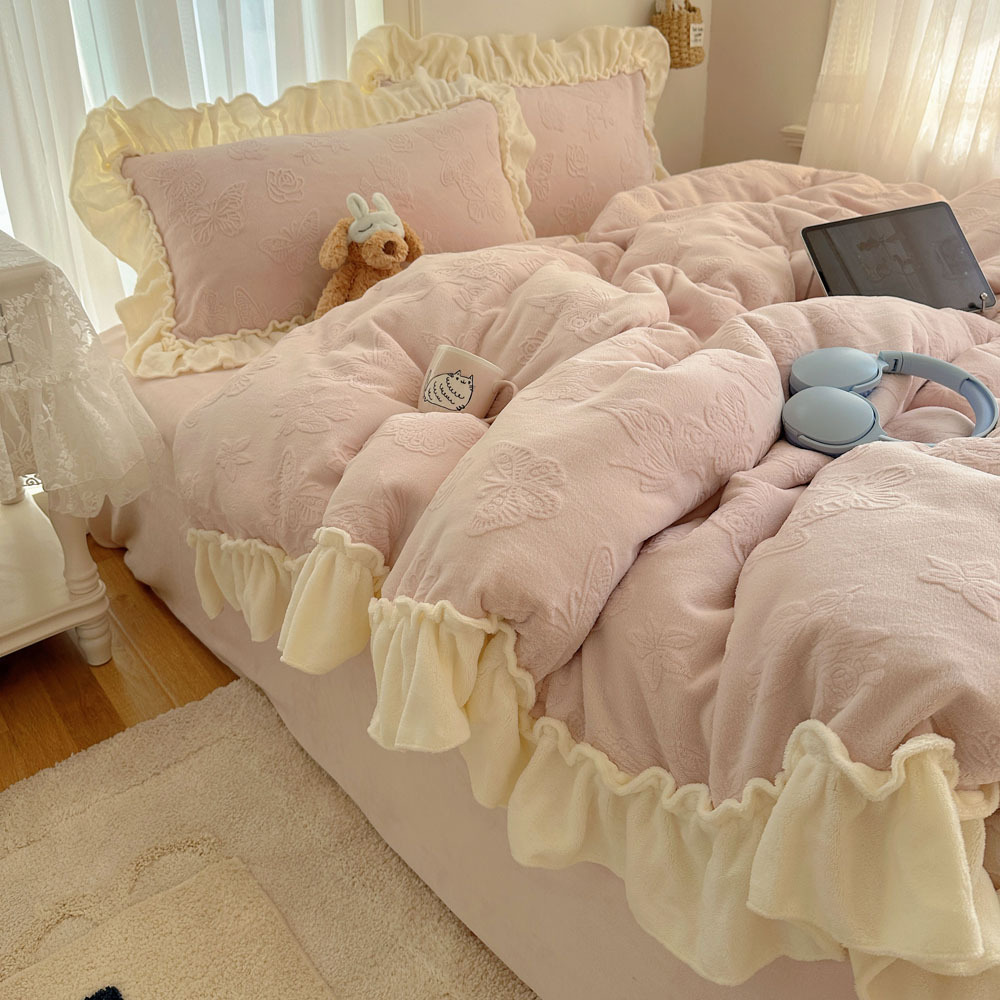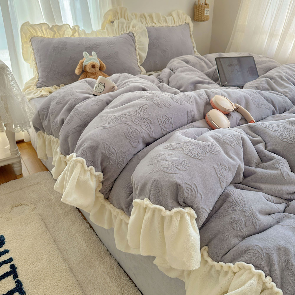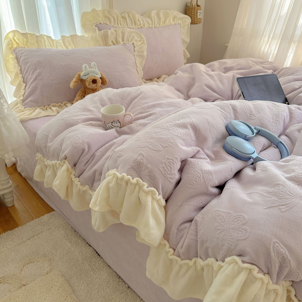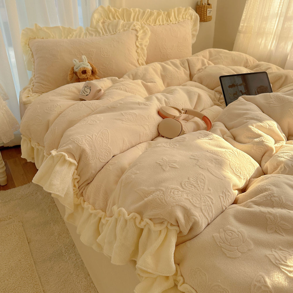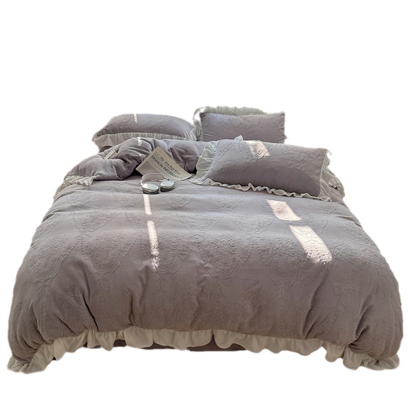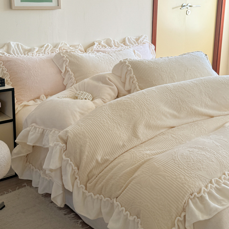 Французский кружевой набор типа A молочный бархат из четырех частей утолщен осенью и зимой