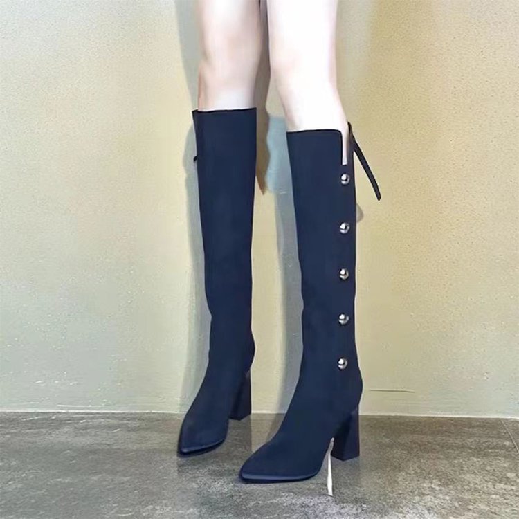 Главная страница > Новые женские высокие сапоги на массивном каблуке Осень/Зима 2025, с острым носком, на молнии сзади, теплые модные сапоги на высоком каблуке для верховой езды, оптом