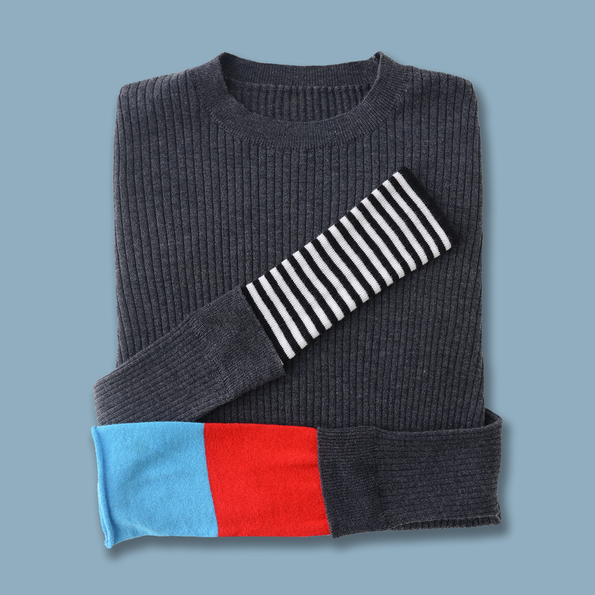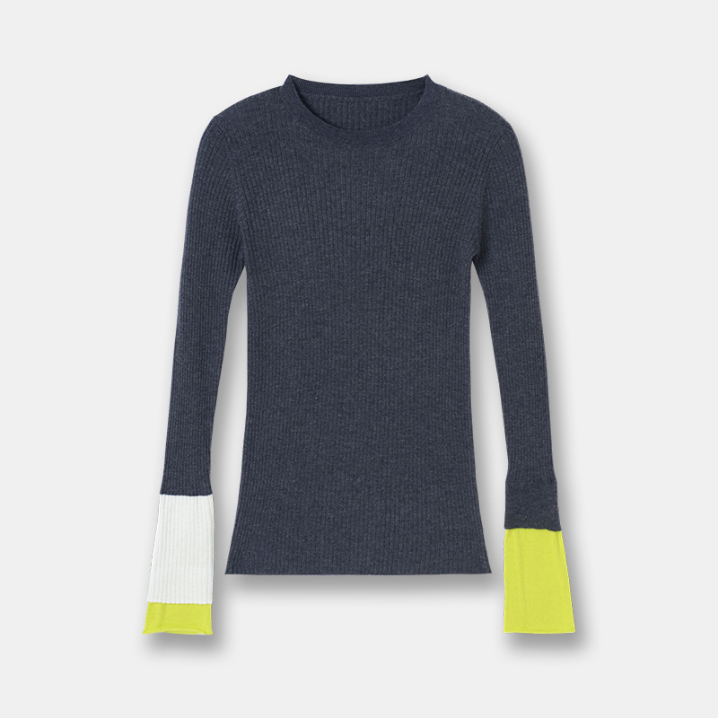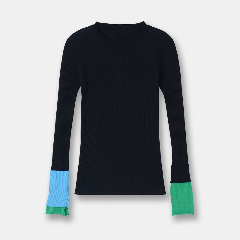 Главная страница > Новый женский свитер EF25 весна-лето, облегающий, в рубчик, с контрастными манжетами, эластичная базовая футболка, пуловер с круглым вырезом