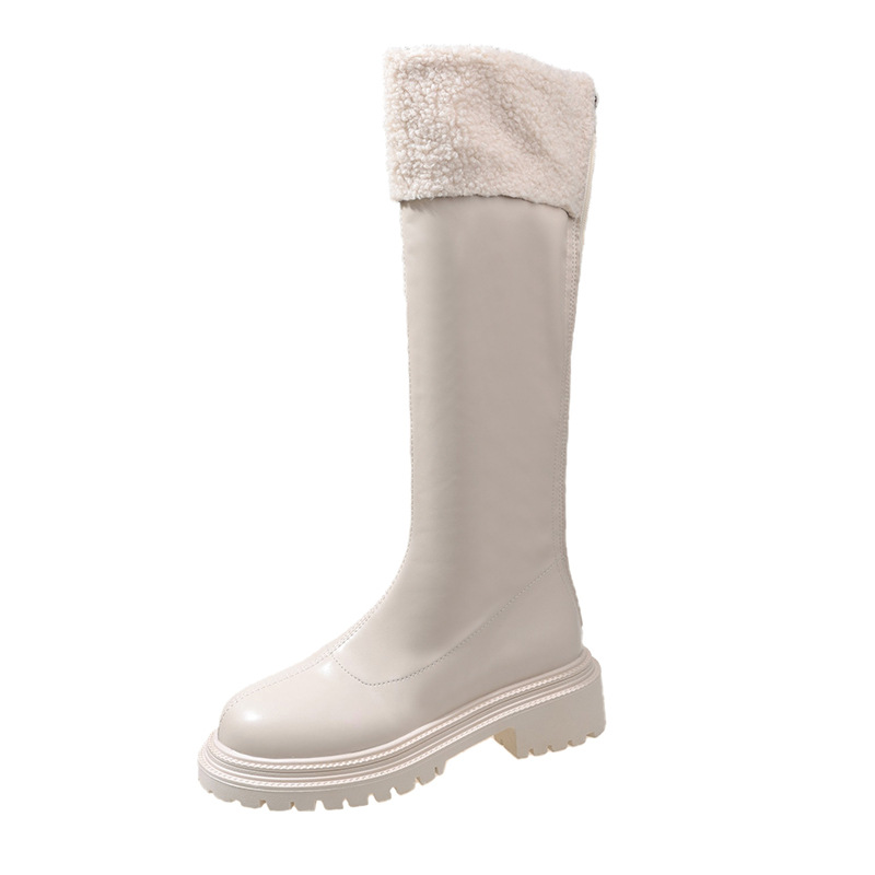 Главная страница > Длинные рыцарские ботинки Мао на толстой каблуке на флисовой подкладке на молнии, женские осенние новые корейские тонкие ботинки с круглым носком и отворотами 2023 года