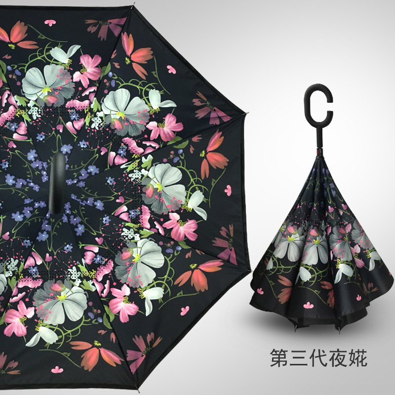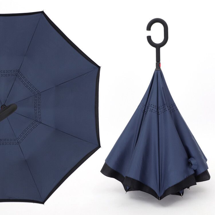 Главная страница > Оптовая Продажа с фабрики двухслойный автоматический обратный зонт, стоящий C-образный безмокрый опрокидывающийся Зонт Солнечный зонт заказать рекламный зонтик логотип