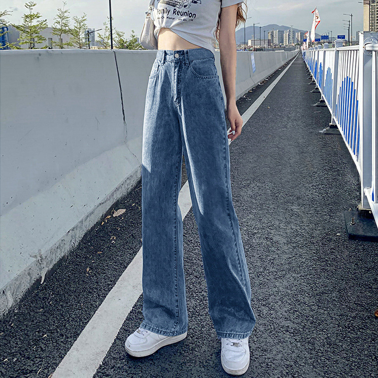 Главная страница > 885 Широкие Джинсы женские с высокой талией весна-осень 2022 Новые прямые свободные вертикальные брюки