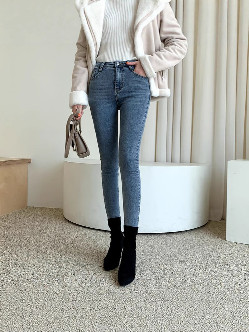 Главная страница > Женские джинсы больших размеров с высокой талией, облегающие, эластичные, новинка 2025 года в корейском стиле, укороченные брюки.