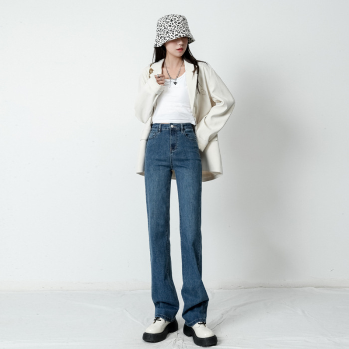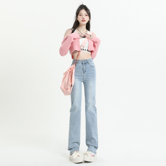 Главная страница > Прямые джинсы для женщин, новая модель осень-зима 2025, узкие широкие брюки для миниатюрных фигур, с высокой талией, зимние, весенние и осенние брюки-кэжуал.