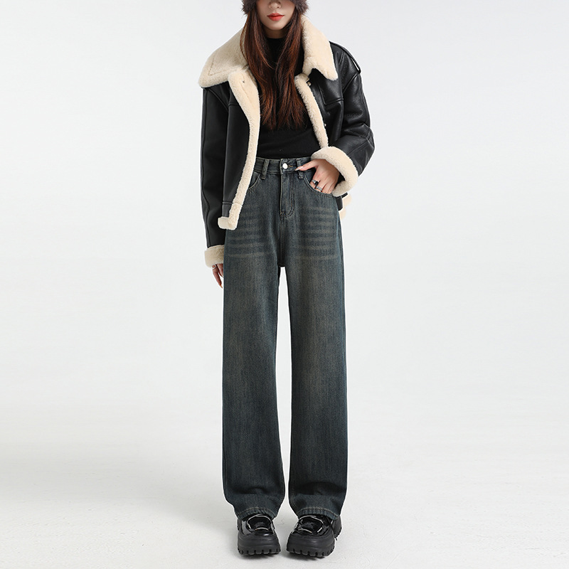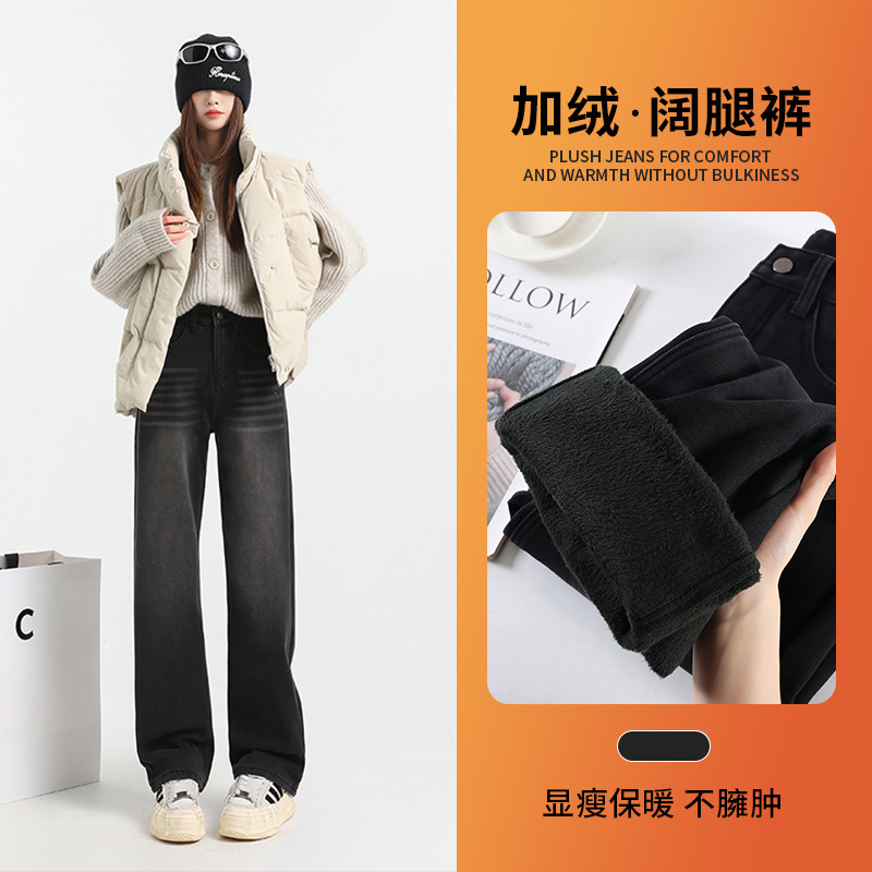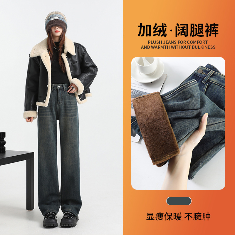 Главная страница > Женские широкие джинсы на флисовой подкладке, осень и зима, брюки с высокой талией для женщин, осень и зима, женские широкие брюки на флисовой подкладке, осень.