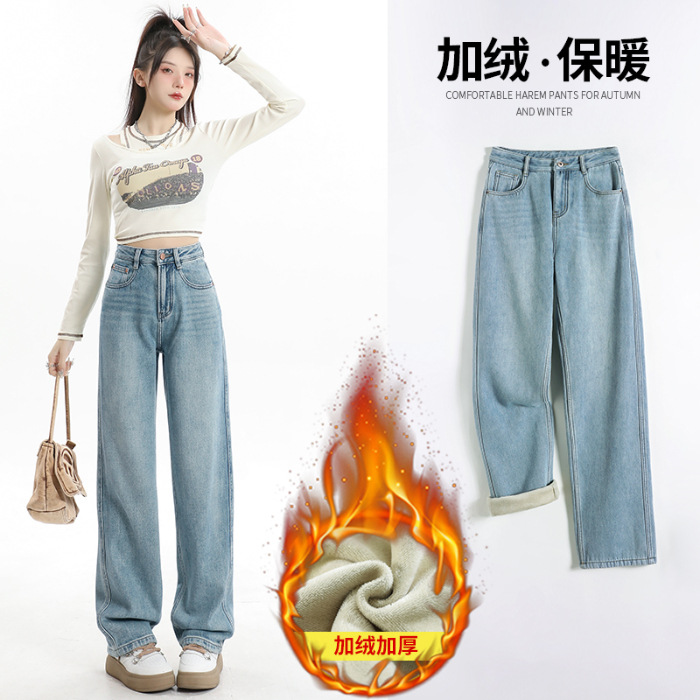 Женские широкие джинсы на флисовой подкладке, осень и зима, брюки с высокой талией для женщин, осень и зима, женские широкие брюки на флисовой подкладке, осень.