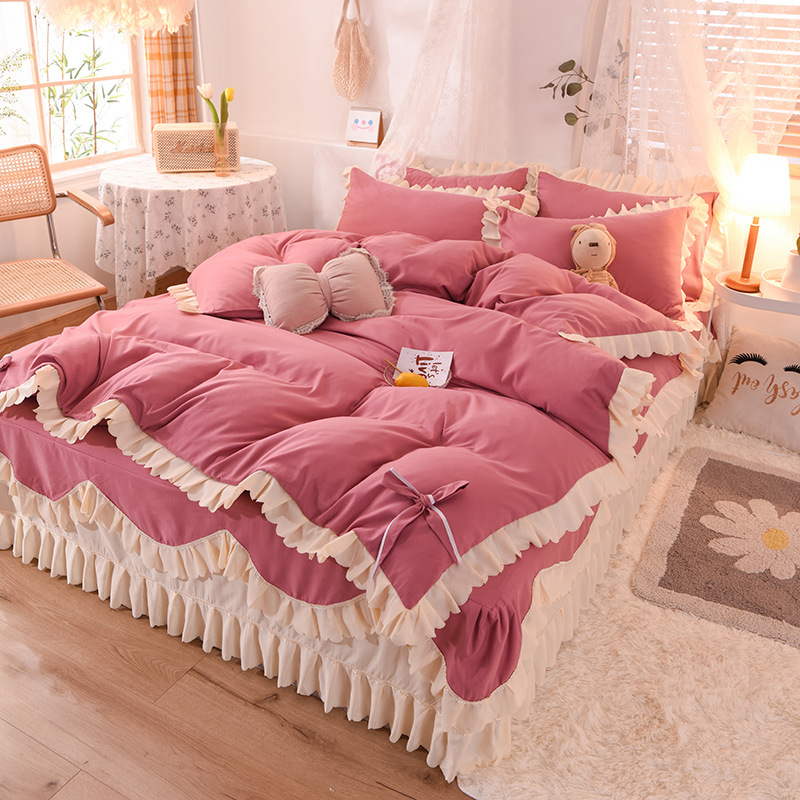 Главная страница > Ins утолщенный шлифовальный комплект из четырех предметов в Корейском стиле, постельное белье в форме сердца принцессы для девочек, юбка для кровати, простыня, пододеяльник на весну и лето