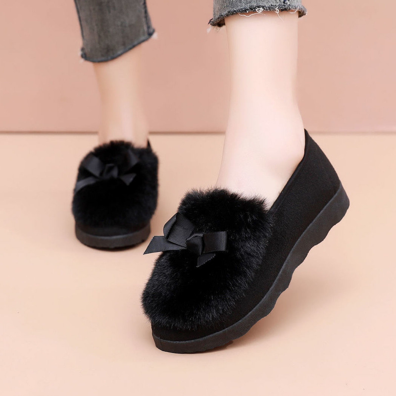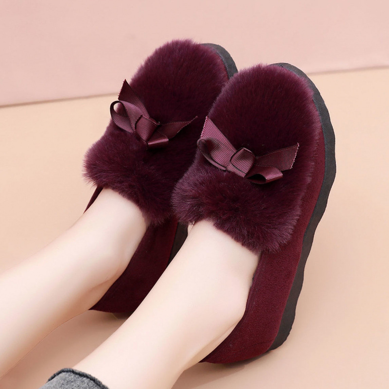 Зимние бобовые ботинки женские корейские пушистые банты шерстяные ботинки хлопчатобумажные ботинки теплые ботинки хлопчатобумажные ботинки