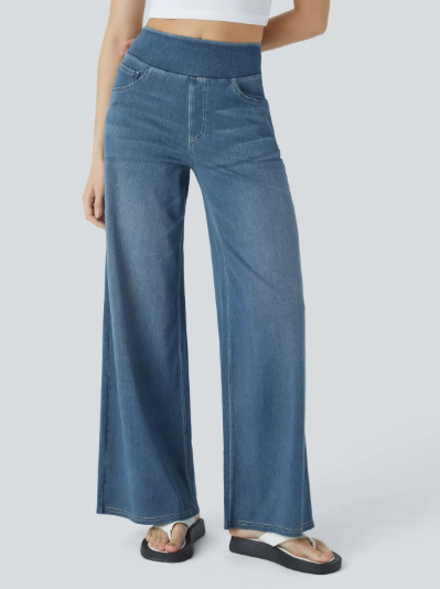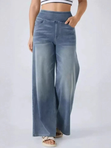 Главная страница > Новые трансграничные джинсовые широкие брюки большого размера для женщин, повседневные брюки с высокой талией, утягивающие, с множеством карманов, прямые, свободные, с бородкой.