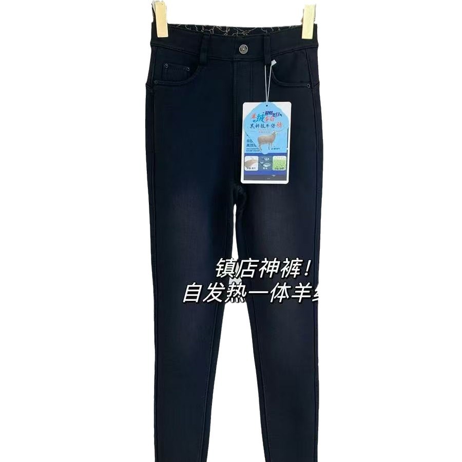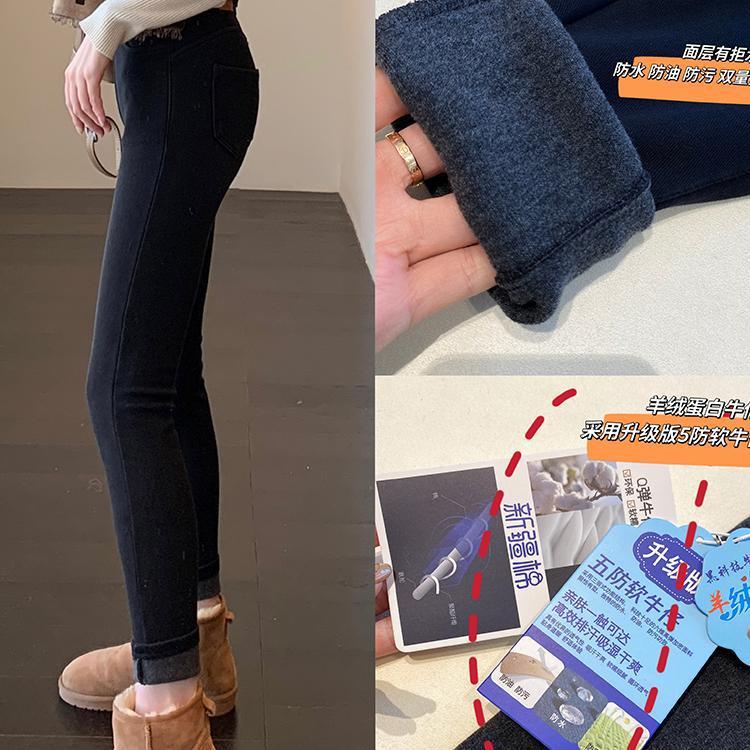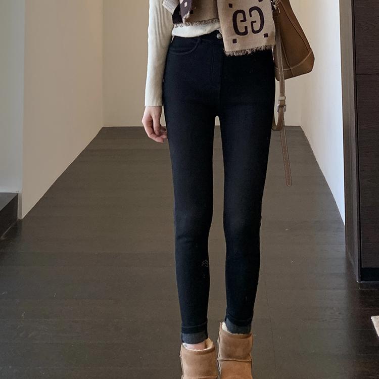Главная страница > A201019 Городской магазин штанов кашемировый белок теплый маленький черный брюки с высокой талией и узким дном джинсы женские осень и зима новые