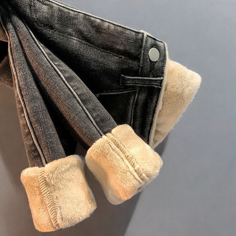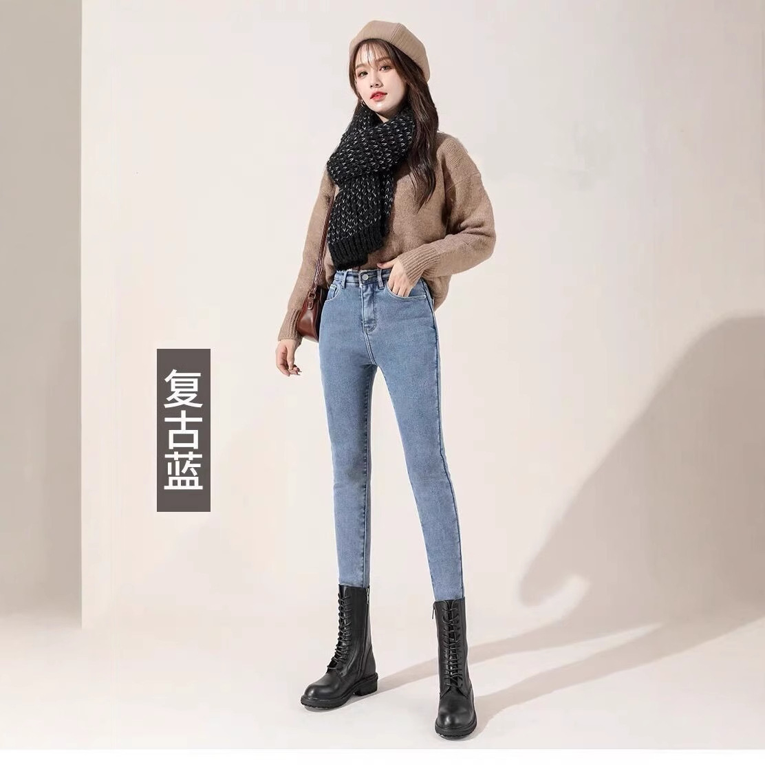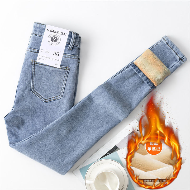 Джинсы женские бархатные толстые и высокие талии теплые зимой