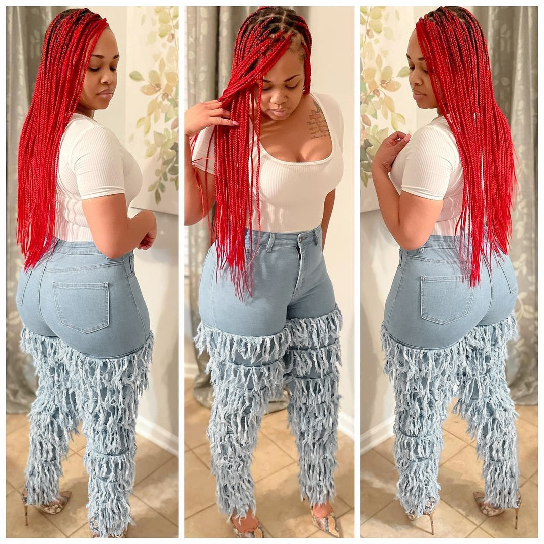 Главная страница > A3255 Amazon AliExpress трансграничные поставки новых европейских и американских женщин сложены многослойные джинсы с бахромами