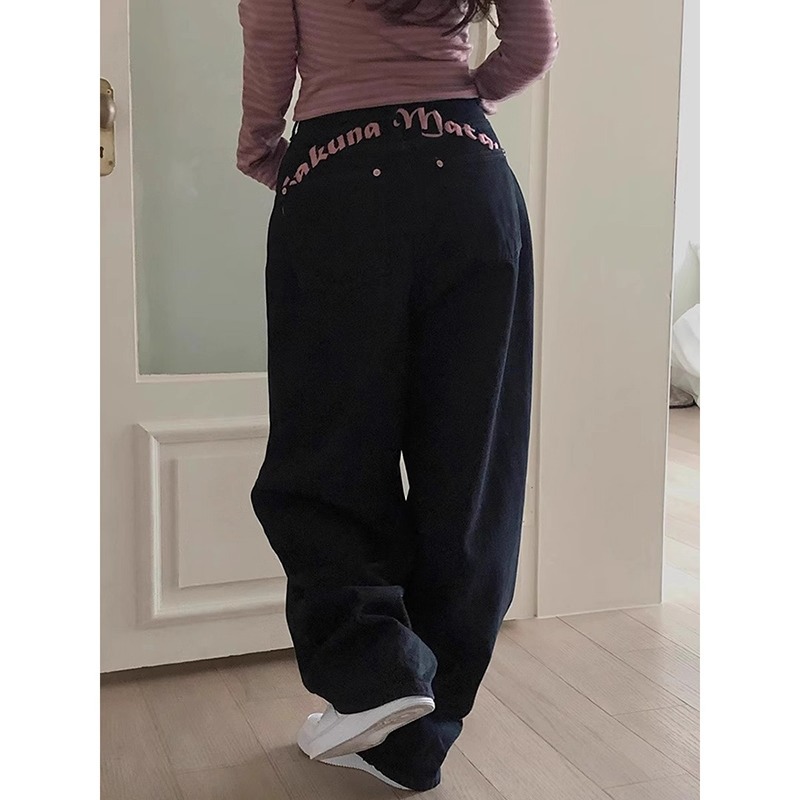 Главная страница > Джинсы с вышивкой и принтом букв для женщин, весенние новые милые и крутые шорты для девочек с высокой талией, тонкие широкие прямые длинные брюки