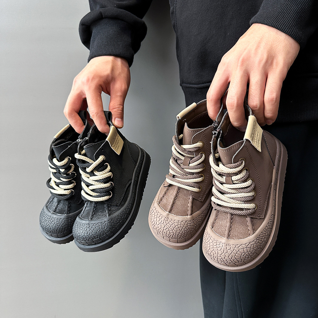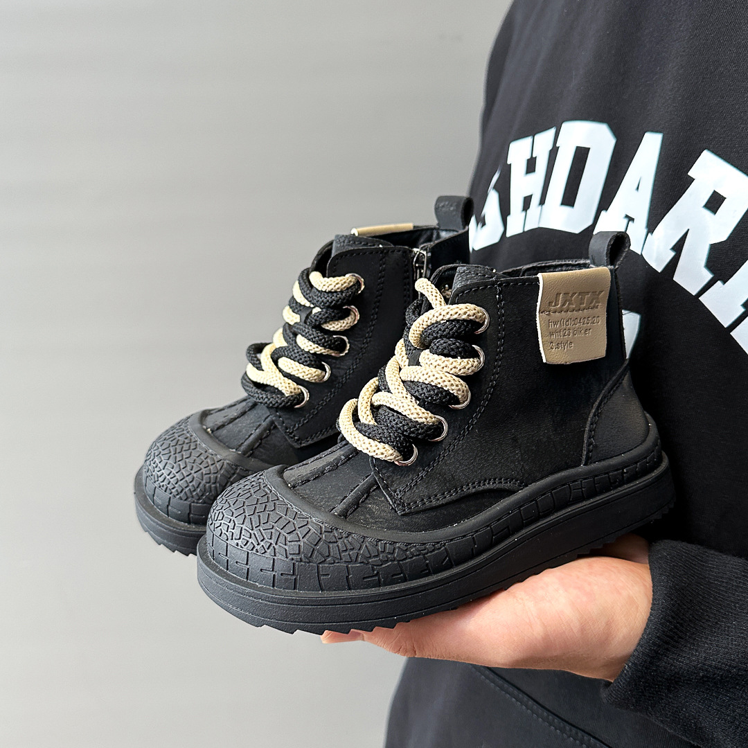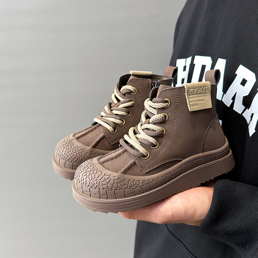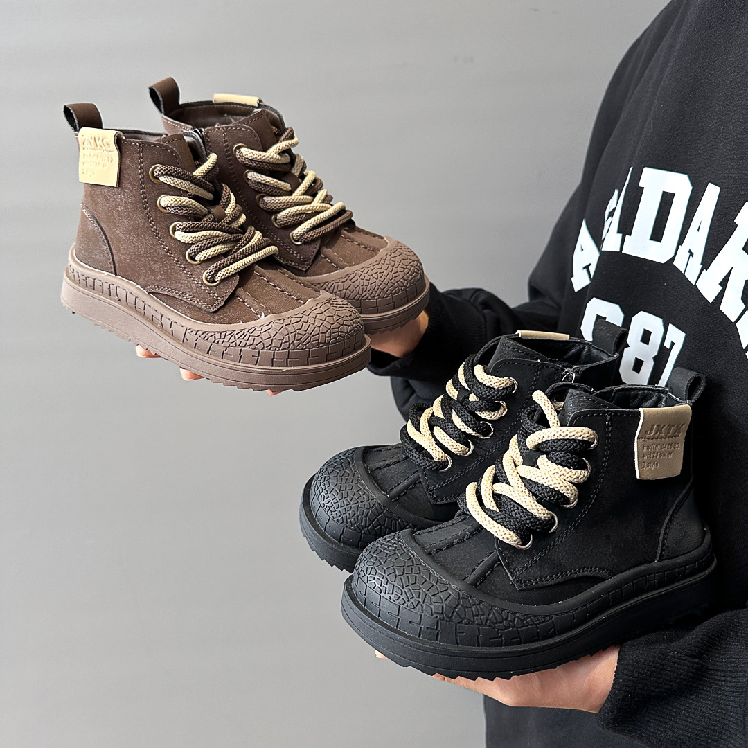 Детские ботинки 2025 осень-зима новый стиль для мальчиков антискользящие и противоударные с флисовой подкладкой хлопковые короткие ботинки корейский стиль для девочек одинарные ботинки