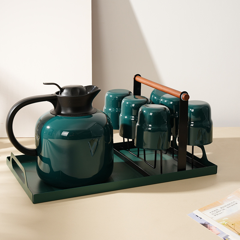 Бирюзовый зеленый горшок+6 чашек+подстаканник+поднос