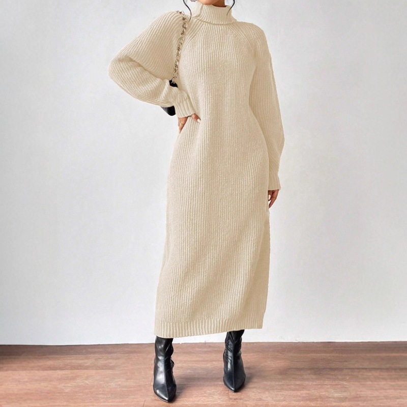 Главная страница > Amazon трансграничная внешняя торговля женское платье-свитер модный пуловер с высоким воротником и длинными рукавами трикотажная юбка однотонная длинная внутренняя юбка